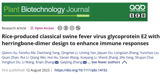 近日,中國(guó)工程院院士張改平院士團(tuán)隊(duì)在權(quán)威雜志Plant Biotechnology Journal(SCI影響因子13.8)發(fā)表了題“Rice-produced classical swine fever virus glycoprotein E2 with herringbone-dimer design to enhance immune responses”的研究論文。該研究論文以水稻胚乳表達(dá)經(jīng)典豬瘟病毒E2為例,描述了一種簡(jiǎn)單、高效的疫苗設(shè)計(jì)策略。通過(guò)水稻表達(dá)“人字形”E2二聚體(ht-rE2 dimer),闡明水稻表達(dá)系統(tǒng)具備精準(zhǔn)表達(dá)體外設(shè)計(jì)蛋白的潛力。其表達(dá)E2二聚體具有病毒囊膜蛋白的天然構(gòu)象和高效的抗原活性,同時(shí)具備安全性、易于大規(guī)模生產(chǎn)和低成本的特點(diǎn)。本研究為水稻生產(chǎn)動(dòng)物疫苗的分子設(shè)計(jì)提供理論依據(jù)。