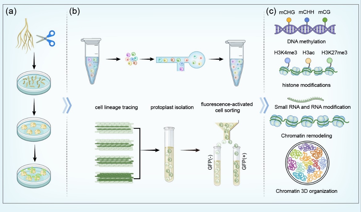 植物再生是植物應(yīng)對機(jī)械損傷和環(huán)境脅迫的重要策略,也是現(xiàn)代農(nóng)業(yè)生物技術(shù)中組織培養(yǎng)和遺傳改良的基礎(chǔ)。在該過程中,體細(xì)胞通過迅速的轉(zhuǎn)錄組重編程改變其細(xì)胞命運(yùn),進(jìn)而獲得全能性。表觀遺傳調(diào)控機(jī)制,包括DNA甲基化、組蛋白修飾和小RNA等,在此過程中發(fā)揮關(guān)鍵作用。隨著技術(shù)的快速發(fā)展,研究人員解析植物再生分子機(jī)制的能力顯著提升,多項(xiàng)研究已陸續(xù)揭示了多個(gè)物種在再生過程中轉(zhuǎn)錄組和表觀組的動態(tài)變化。