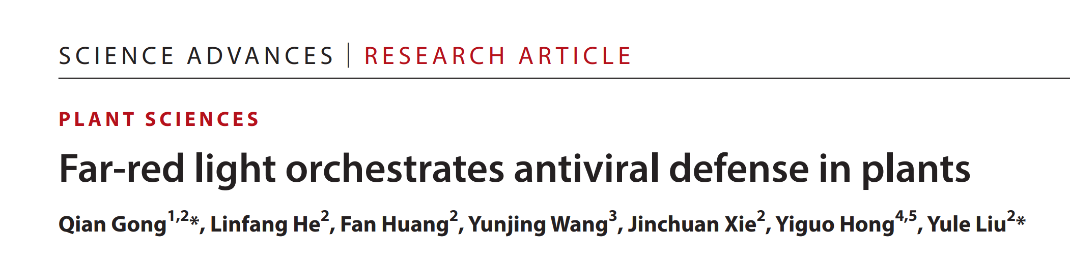 Science Advances |北京大學龔騫課題組與清華大學劉玉樂課題組合作揭示遠紅光調控植物抗病毒免疫的新機制2025-11-20 -