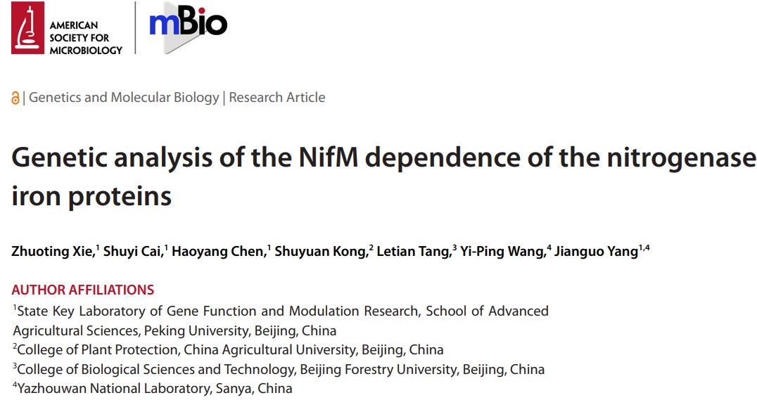 mBio|楊建國課題組發(fā)文探究固氮酶系統(tǒng)核心酶組分NifH蛋白的多樣性及成熟機制2025-11-04