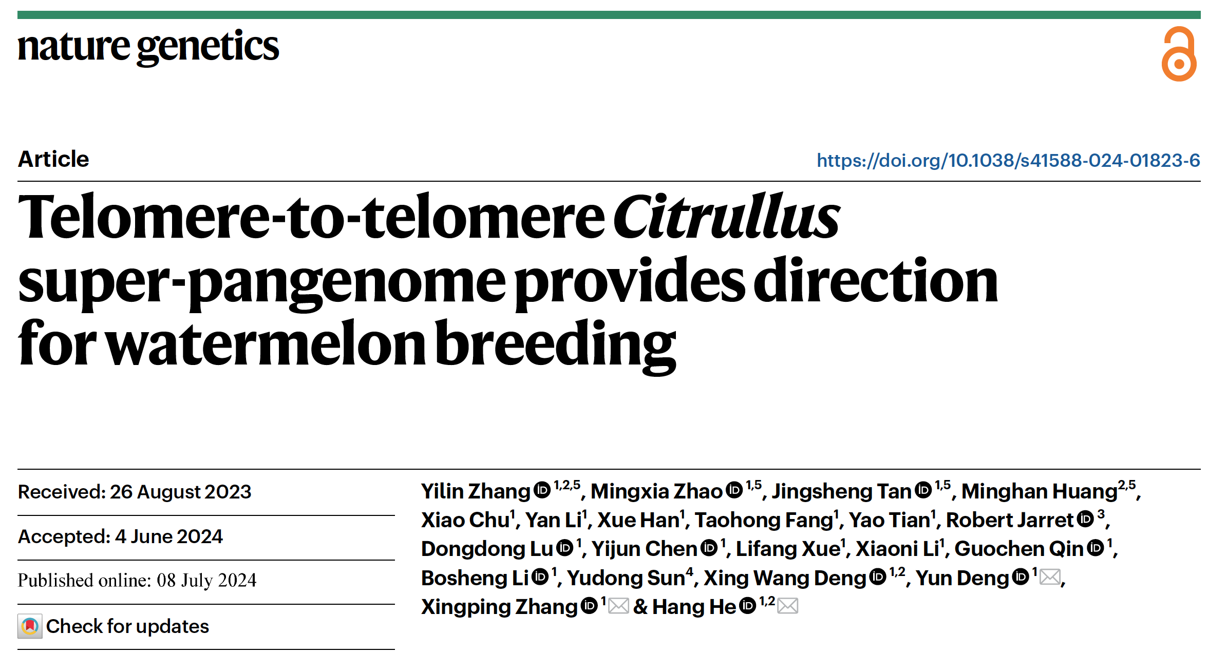 北京大學(xué)現(xiàn)代農(nóng)業(yè)研究院完成西瓜屬端粒到端粒超級泛基因組!開啟西瓜種質(zhì)創(chuàng)新及品種培育新時代2024-07-08 -