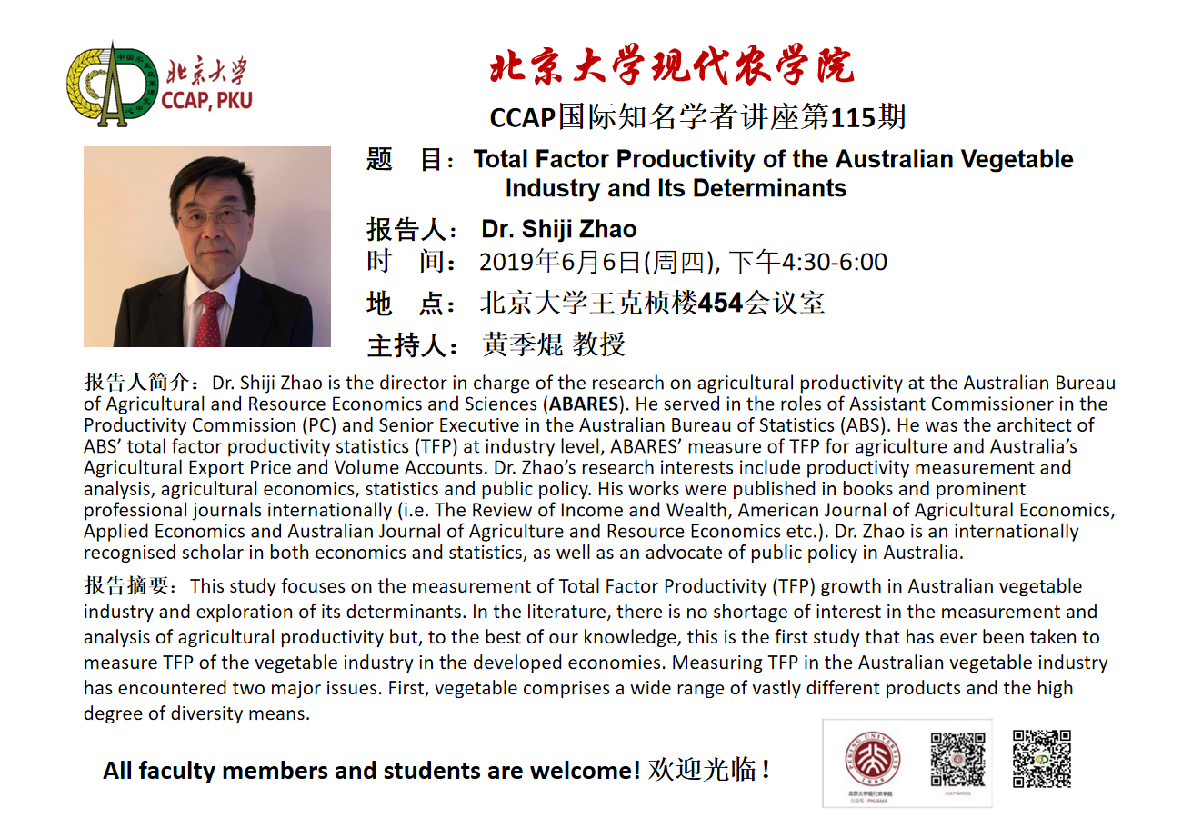 北京大學(xué)現(xiàn)代農(nóng)學(xué)院CCAP國(guó)際知名學(xué)者講座第115期