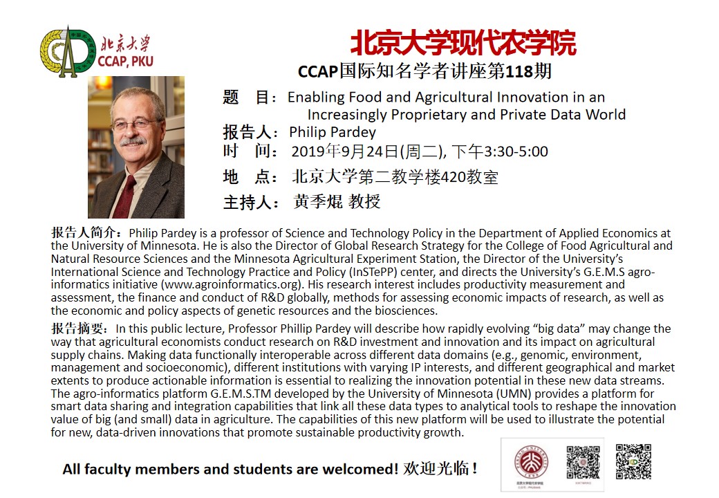 北京大學(xué)現(xiàn)代農(nóng)學(xué)院CCAP國(guó)際知名學(xué)者講座第118期