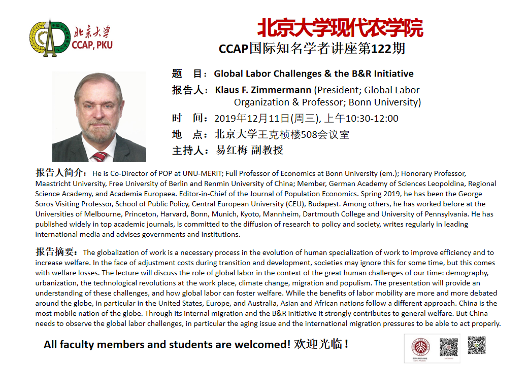 北京大學(xué)現(xiàn)代農(nóng)學(xué)院CCAP國際知名學(xué)者講座第122期