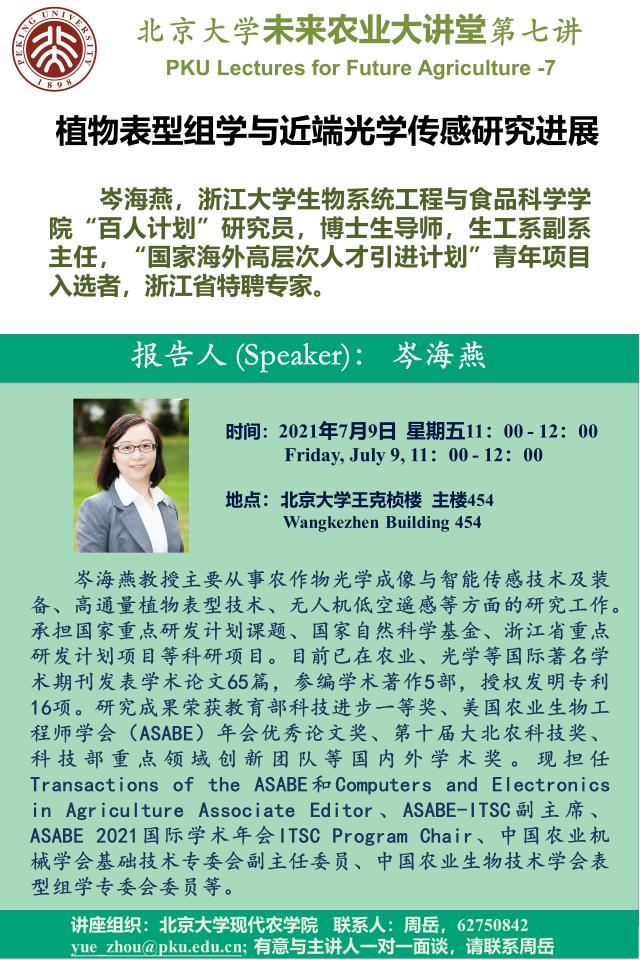 講座通知:北京大學(xué)未來農(nóng)業(yè)大講堂第七講——植物表型組學(xué)與近端光學(xué)傳感研究進(jìn)展