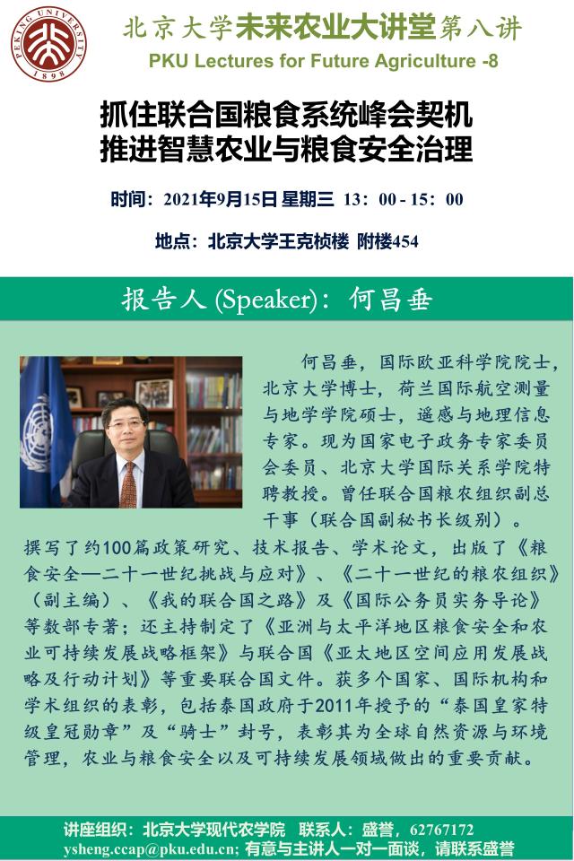 講座通知:北京大學(xué)未來農(nóng)業(yè)大講堂第八講——抓住聯(lián)合國糧食系統(tǒng)峰會(huì)契機(jī) 推進(jìn)智慧農(nóng)業(yè)與糧食安全治理
