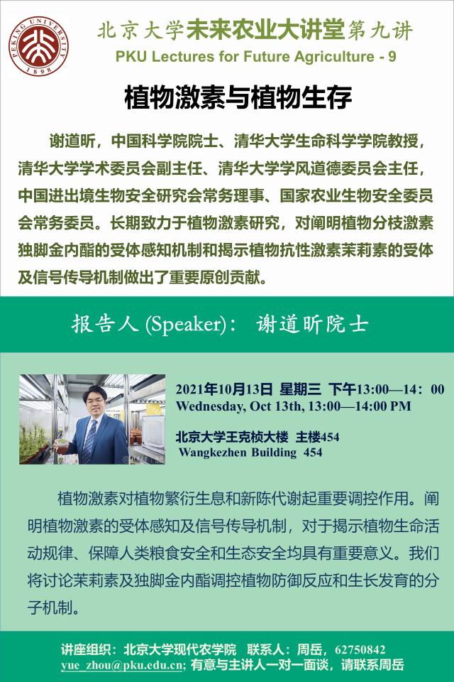 講座通知:北京大學未來農(nóng)業(yè)大講堂第九講——植物激素與植物生存