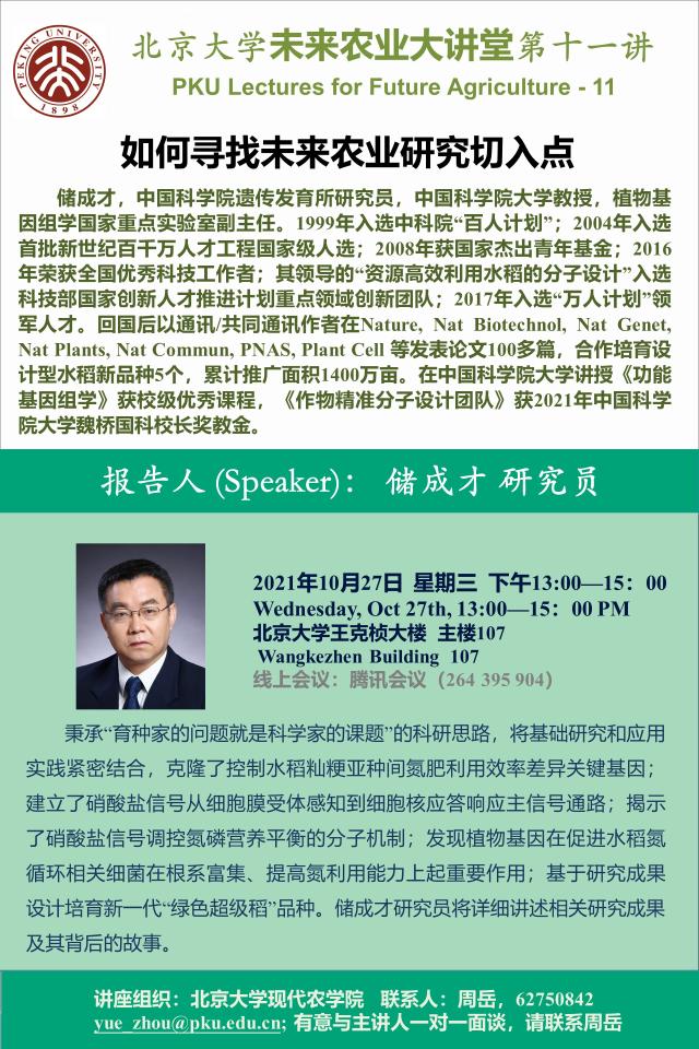 講座通知:北京大學(xué)未來農(nóng)業(yè)大講堂第十一講——如何尋找未來農(nóng)業(yè)研究切入點(diǎn)