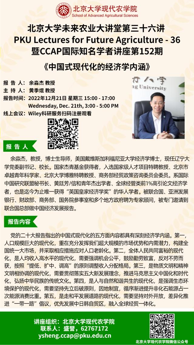 講座通知:北京大學未來農(nóng)業(yè)大講堂第三十六講——中國式現(xiàn)代化的經(jīng)濟學內(nèi)涵