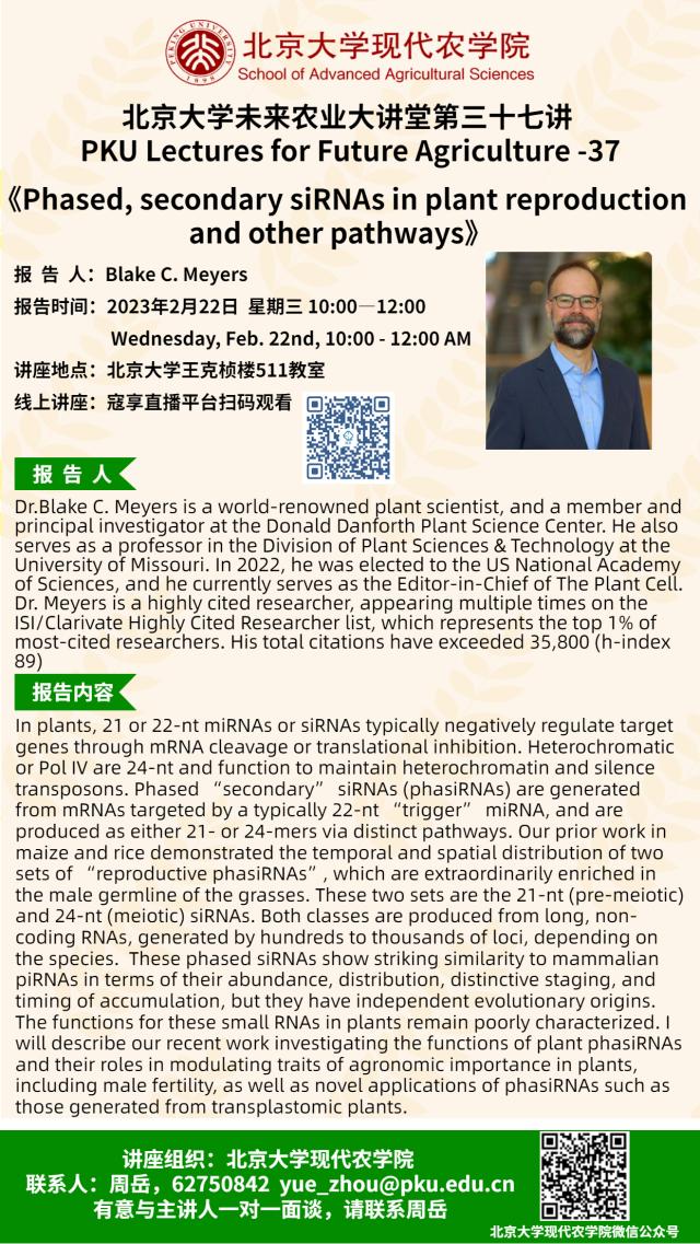 講座通知:北京大學(xué)未來(lái)農(nóng)業(yè)大講堂第三十七講——Phased, secondary siRNAs in plant reproduction and other pathways 2023-02-16 來(lái)源: 作者: