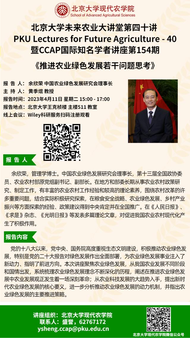 講座通知:北京大學(xué)未來農(nóng)業(yè)大講堂第四十講——推進(jìn)農(nóng)業(yè)綠色發(fā)展若干問題思考