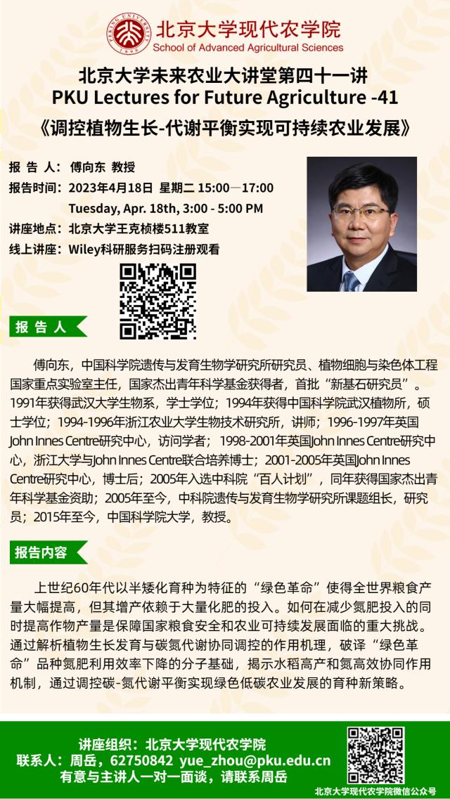 講座通知:北京大學未來農業(yè)大講堂第四十一講——調控植物生長-代謝平衡實現(xiàn)可持續(xù)農業(yè)發(fā)展