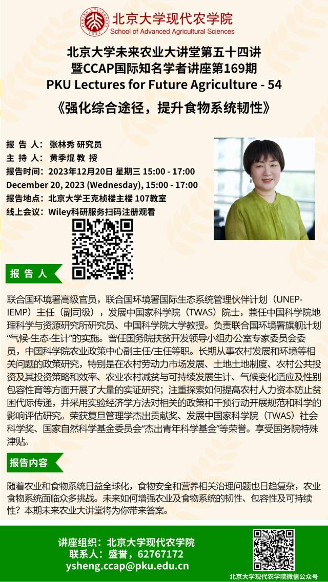 講座通知:北京大學(xué)未來(lái)農(nóng)業(yè)大講堂第五十三講——強(qiáng)化綜合途徑,提升食物系統(tǒng)韌性