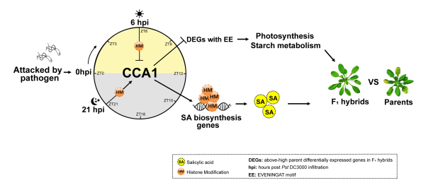 生物鐘核心因子 CCA1 通過時(shí)間策略平衡且同時(shí)提高雜交F1抗病-生長(zhǎng)雜種優(yōu)勢(shì)的分子機(jī)制