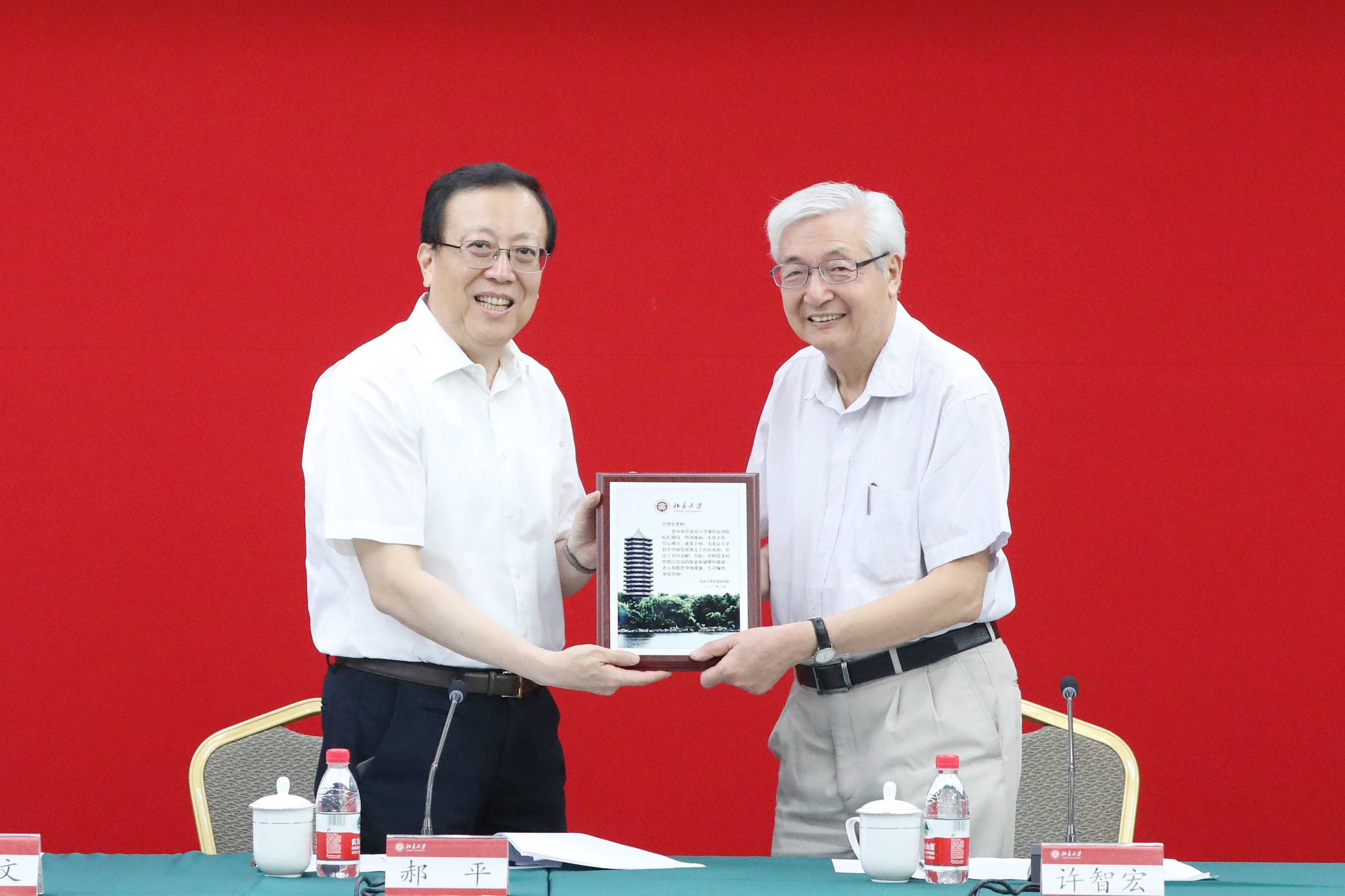 郝平校長(zhǎng)向許智宏同志頒發(fā)感謝狀