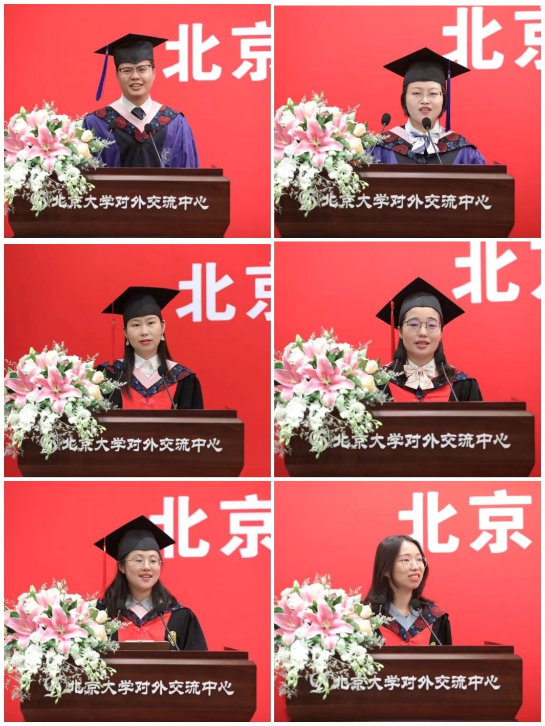 六位畢業(yè)生輪流上臺(tái)發(fā)表感言。他們分享了幾年來(lái)的學(xué)習(xí)生活與成長(zhǎng)的心路歷程,表達(dá)了對(duì)導(dǎo)師及全體教職員工衷心的感謝,表達(dá)了對(duì)所學(xué)專業(yè)的熱愛,對(duì)母校的感恩以及離別的依依不舍之情。生物技術(shù)學(xué)科博士畢業(yè)生韓雪同學(xué)感謝導(dǎo)師和課題組小伙伴們對(duì)自己的包容、支持和鼓勵(lì),特別是導(dǎo)師鄧興旺教授的一句話一直激勵(lì)著她:“雖然是年齡最小的,但是要做最好的”;農(nóng)業(yè)經(jīng)濟(jì)管理學(xué)科博士畢業(yè)生關(guān)寶珠表示,讀博期間認(rèn)識(shí)到身心健康是最重要的,要專注自己,不與他人比較;農(nóng)業(yè)經(jīng)濟(jì)管理學(xué)科博士畢業(yè)生高晶晶表示,在燕園的幾年求學(xué)生涯,讓自己思考問題的角度與深度有了很大變化,有了更多自己的思考和判斷,不再盲從;農(nóng)業(yè)經(jīng)濟(jì)管理學(xué)科博士畢業(yè)生王霞深情回憶了自己參與農(nóng)村調(diào)研、擔(dān)任學(xué)院研會(huì)主席以及疫情期間從美國(guó)結(jié)束交流回國(guó)的經(jīng)歷,感謝學(xué)院對(duì)自己全方位的培養(yǎng);農(nóng)業(yè)經(jīng)濟(jì)管理學(xué)科碩士畢業(yè)生陳玉婷用手上的“老繭”比喻一路走來(lái)的收獲,她表示要不斷打磨自己,不斷豐富人生的“老繭”;農(nóng)業(yè)經(jīng)濟(jì)管理學(xué)科碩士畢業(yè)生文峰表示,自己即將以一名選調(diào)生身份趕赴祖國(guó)基層工作,自己將賡續(xù)母校紅色血脈,傳承母校百年愛國(guó)為民精神,創(chuàng)造出無(wú)愧于時(shí)代和人民的業(yè)績(jī)。