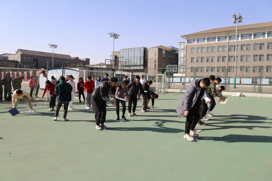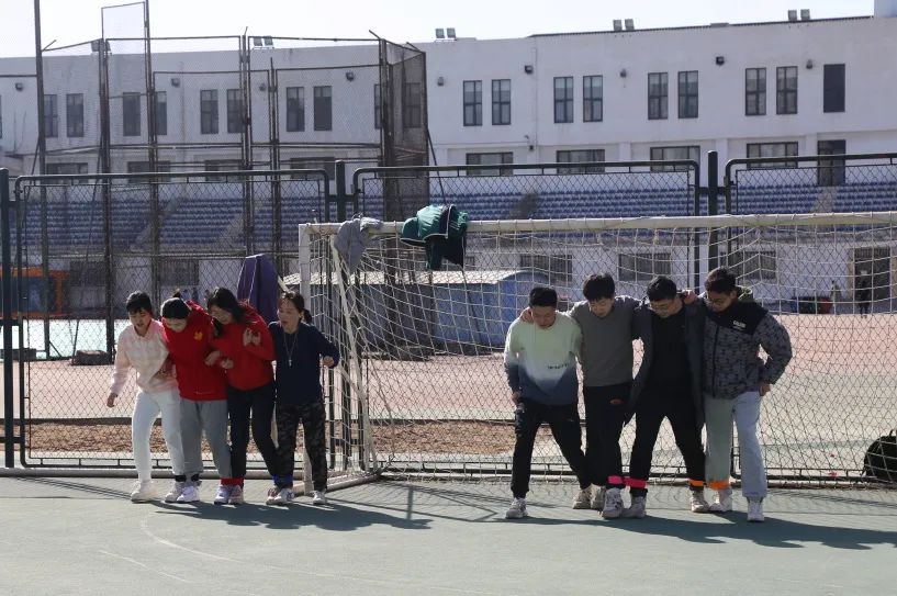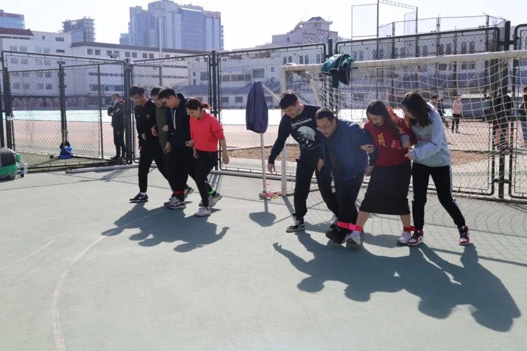 這個項目要求每隊派出4人,每兩個人的一條腿相互捆綁,從一方底線走到另一方底線,按照每隊用時長短進行排名。伴隨著開賽的哨聲和整齊劃一的口號,大家緊挽雙臂,有條不紊地前進。最終,堿基互補配對隊、WT聯(lián)隊、啊對對隊獲得了第一名、第二名、第三名。
