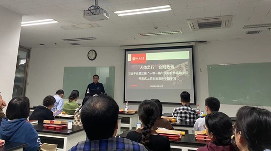 西鵬就習(xí)近平總書記在第三屆“一帶一路”國際合作高峰論壇開幕式上的主旨演講進(jìn)行了專題講解,從“一帶一路”的提出背景、主體框架、合作內(nèi)容、實(shí)現(xiàn)路徑、實(shí)踐成就和世界意義等進(jìn)行多角度分析。他指出,在百年變局加速演進(jìn)之際,中國著眼人類前途命運(yùn)和整體利益,因應(yīng)全球發(fā)展及各國期待,提出共建“一帶一路”倡議。十年來,共建“一帶一路”成果豐碩,全面實(shí)現(xiàn)了從理念到行動、從愿景到現(xiàn)實(shí)的轉(zhuǎn)化,引領(lǐng)構(gòu)建了全球互聯(lián)互通新模式,開創(chuàng)了國際合作新范式,開辟了共同繁榮發(fā)展新道路,成為深受歡迎的國際公共產(chǎn)品和國際合作平臺,是真正惠及各國人民的“發(fā)展帶”“幸福路”。