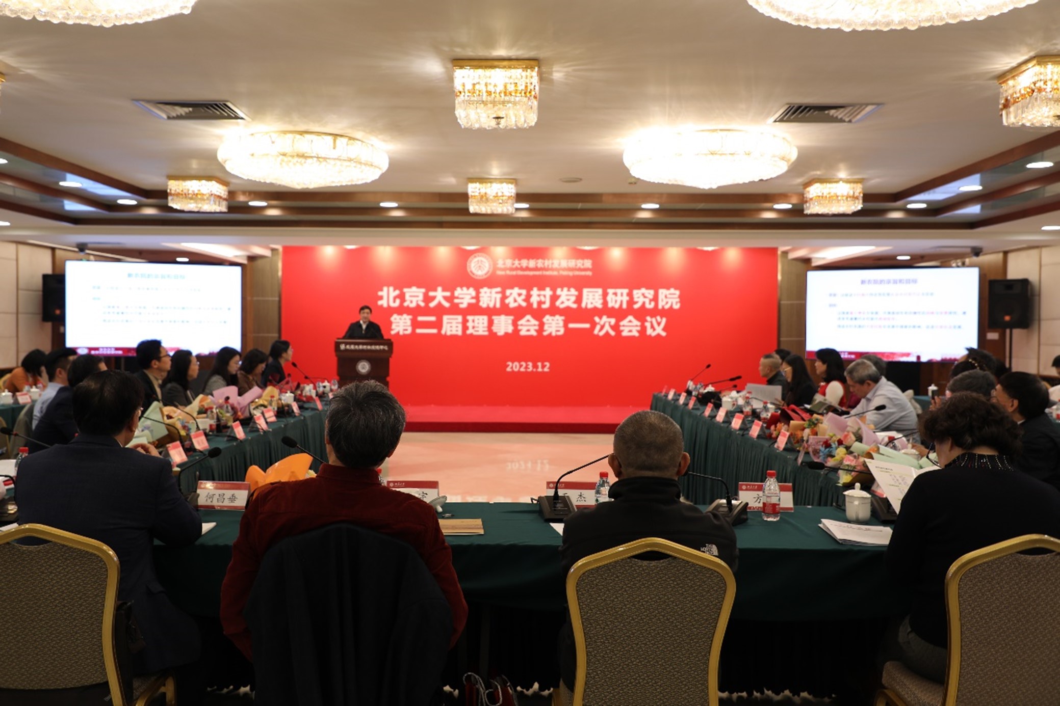 2023年12月25日下午,北京大學(xué)新農(nóng)村發(fā)展研究院(以下簡稱“新農(nóng)院”)第二屆理事會第一次會議在北京大學(xué)召開。新農(nóng)院理事長、北京大學(xué)原副校長王杰,其他理事會成員、理事單位代表、以及新農(nóng)院研究骨干,近50人出席會議。會議由王杰理事長主持。