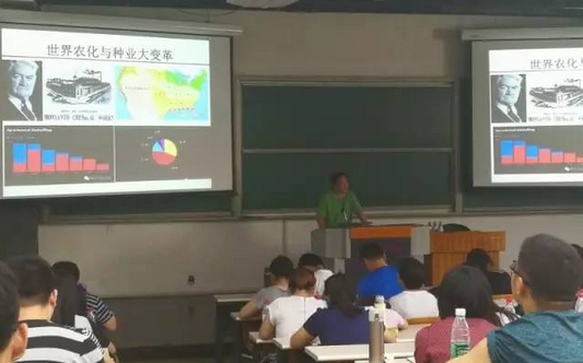 在上午的課程中,鄧老師首先向同學們介紹了雜種優(yōu)勢這一生物學現象,及其在農業(yè)生產上的應用。隨后介紹了“三系法”“二系法”雜交水稻方法背后的生物學原理和實際生產上遇到的一些問題,提出解決植物隱性核雄性不育的繁殖,是形成新一代雜交水稻技術的關鍵。之后鄧老師向同學們介紹了他所帶領的研究團隊,開發(fā)出的第三代雜交育種技術(G3育種技術)所取得的成果、不足和未來研究方向。接下來鄧老師又向大家介紹了目前世界人口的高速增長與傳統(tǒng)農業(yè)技術產量受限之間的矛盾,提出保障糧食安全的根本出路在于發(fā)展現代農業(yè)生物技術,同時向大家耐心介紹了社會上普遍持懷疑態(tài)度的轉基因技術的歷史及原理。