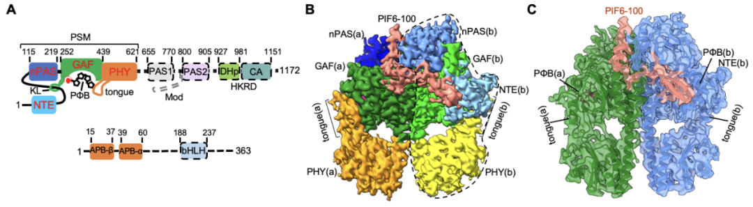 圖1. phyB-Pfr-PIF6(B)和phyBY276H-PIF6(C)均為不對(duì)稱(chēng)三聚體