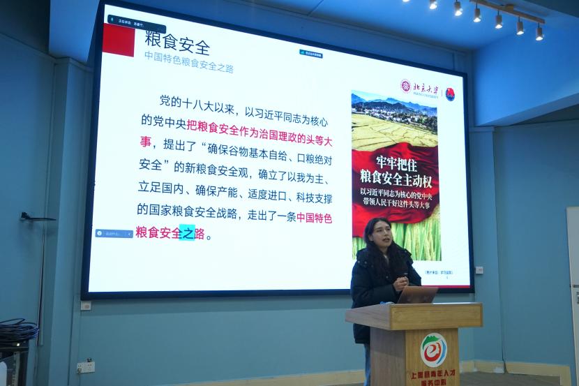 在成為北京大學(xué)團(tuán)委博士生講師團(tuán)講師后,蘇晏寧踴躍參與了多個學(xué)院、校團(tuán)委組織、街道辦黨支部以及區(qū)村鎮(zhèn)的的黨團(tuán)活動理論宣講。面對不同年齡段和背景的宣講對象,她在一次次的宣講中更為深刻地意識到,強(qiáng)國必先強(qiáng)農(nóng),農(nóng)強(qiáng)方能國強(qiáng),新時期是農(nóng)學(xué)人的歷史選擇期、使命擔(dān)當(dāng)期。她希望能夠通過自己的宣講,在分享自己農(nóng)學(xué)專業(yè)知識的基礎(chǔ)上,增進(jìn)大家對國家重大戰(zhàn)略的理解和對農(nóng)業(yè)的了解,深化普通群眾對保障國家糧食安全重要性的認(rèn)識。