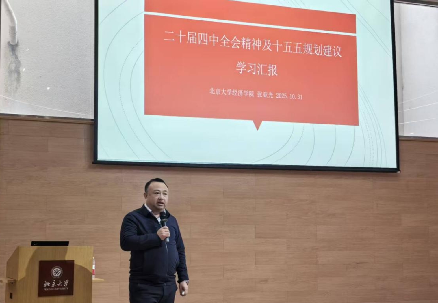 學(xué)習(xí)宣傳貫徹黨的二十屆四中全會(huì)精神,是當(dāng)前和今后一個(gè)時(shí)期的重大政治任務(wù)。為更好地學(xué)習(xí)全會(huì)精神,10月31日,現(xiàn)代農(nóng)學(xué)院黨總支特別邀請(qǐng)北京大學(xué)經(jīng)濟(jì)學(xué)院副院長(zhǎng)、長(zhǎng)聘副教授張亞光帶來(lái)以“二十屆四中全會(huì)精神及‘十五五’規(guī)劃建議學(xué)習(xí)匯報(bào)”為題的專題講座。講座由現(xiàn)代農(nóng)學(xué)院黨總支書(shū)記、副院長(zhǎng)西鵬主持。現(xiàn)代農(nóng)學(xué)院分子農(nóng)學(xué)教工黨支部、農(nóng)業(yè)經(jīng)濟(jì)管理與行政聯(lián)合黨支部、分子農(nóng)學(xué)學(xué)生黨支部和農(nóng)業(yè)經(jīng)濟(jì)管理學(xué)生黨支部黨員共同參與本次學(xué)習(xí)。