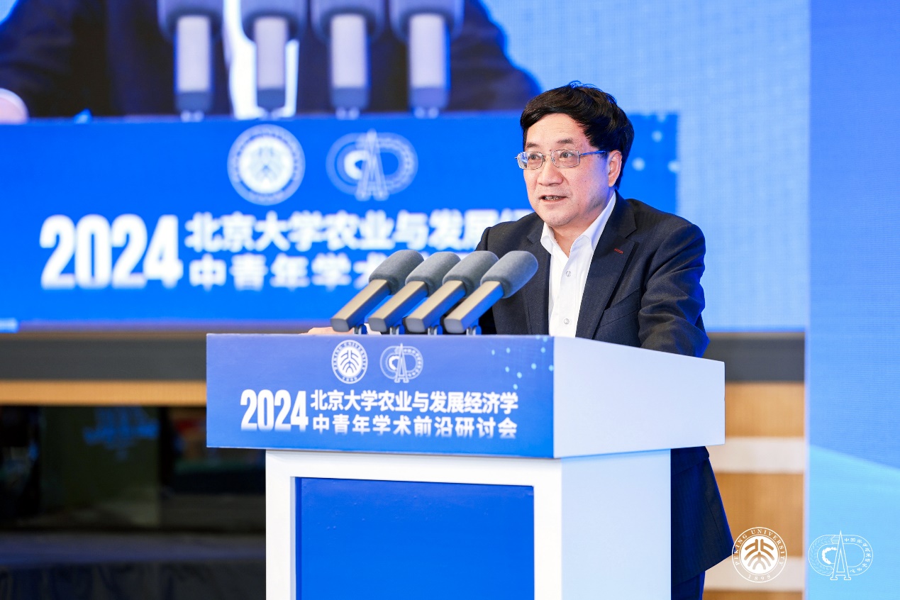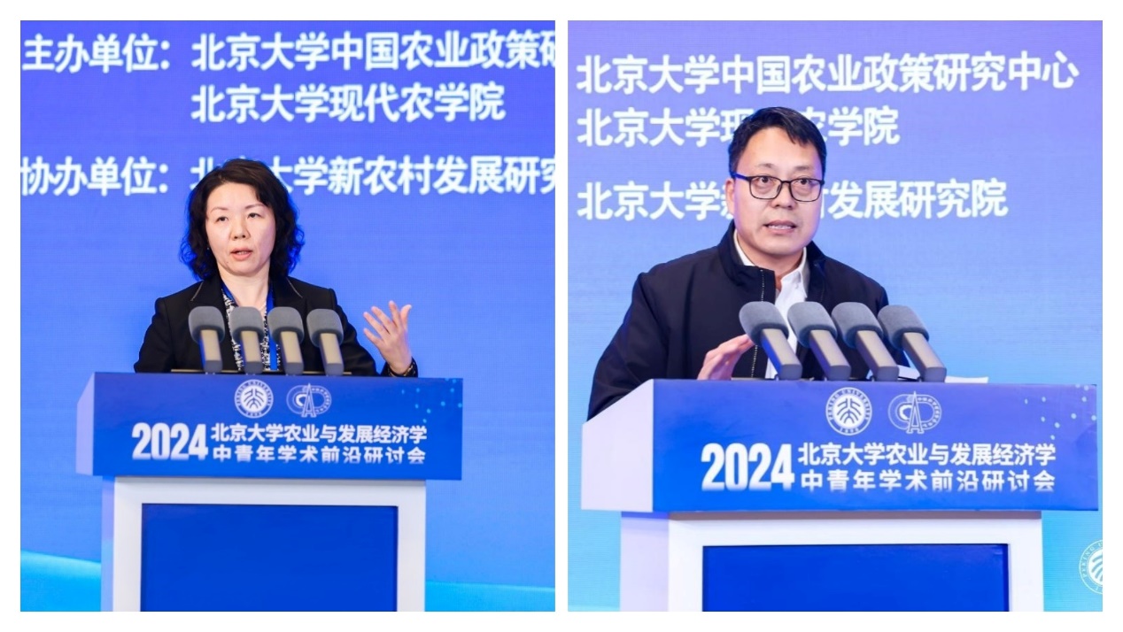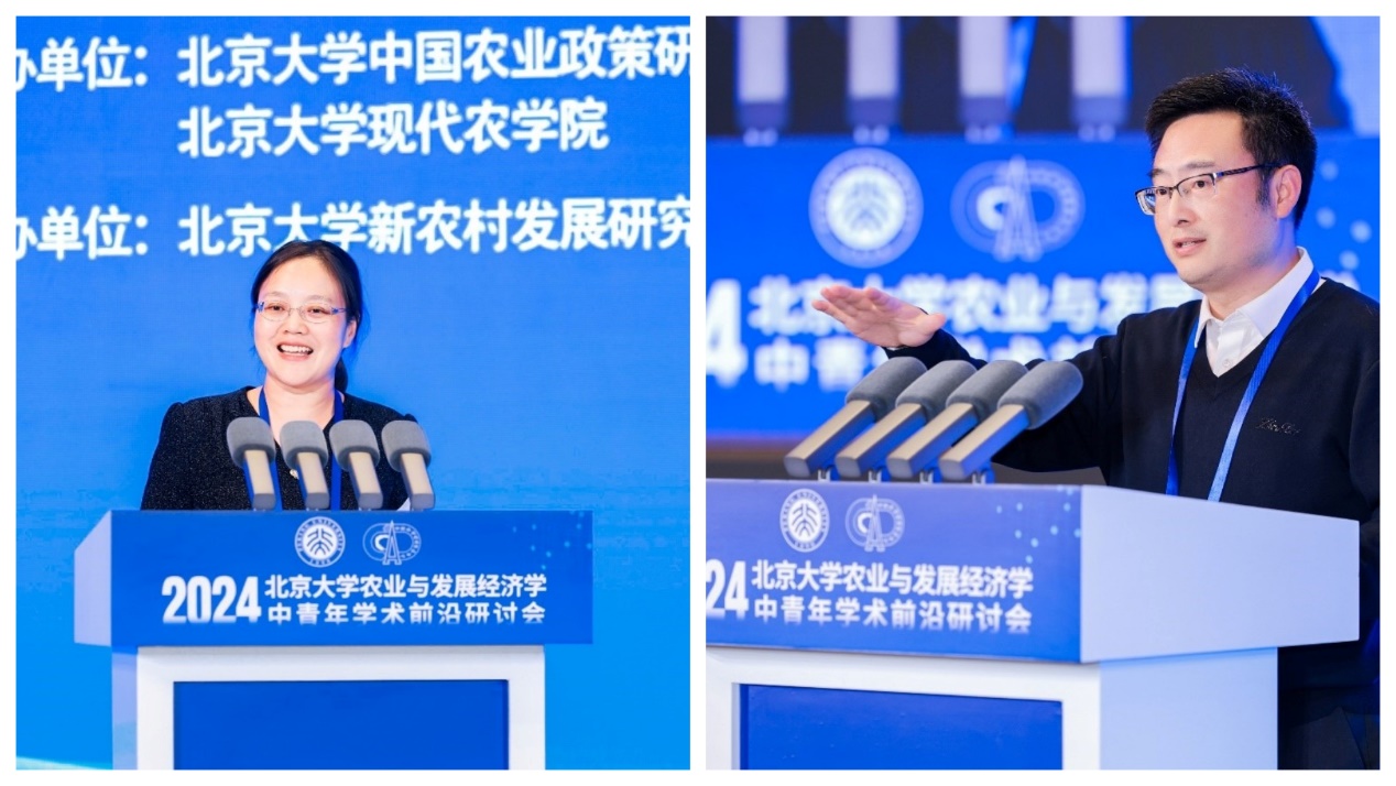 2024年11月10日,北京大學(xué)首屆農(nóng)業(yè)與發(fā)展經(jīng)濟(jì)學(xué)中青年學(xué)術(shù)前沿研討會在北京大學(xué)對外(英杰)交流中心順利召開。本次研討會由北京大學(xué)中國農(nóng)業(yè)政策研究中心、北京大學(xué)現(xiàn)代農(nóng)學(xué)院主辦,北京大學(xué)新農(nóng)村發(fā)展研究院協(xié)辦。本次研討會共邀請來自北京大學(xué)、清華大學(xué)、中國人民大學(xué)、中國農(nóng)業(yè)大學(xué)、南京農(nóng)業(yè)大學(xué)、西北農(nóng)林科技大學(xué)、上海交通大學(xué)、同濟(jì)大學(xué)、中國社會科學(xué)院、中央民族大學(xué)和中南大學(xué)等十余所高校及科研院所的22位優(yōu)秀中青年學(xué)者作主題報告或點評。研討會共吸引300余人現(xiàn)場參會,同時有1.7萬名觀眾通過線上直播平臺觀看會議;參會專家和學(xué)者共同探討了農(nóng)業(yè)經(jīng)濟(jì)、發(fā)展經(jīng)濟(jì)及相關(guān)領(lǐng)域的前沿問題,分享了學(xué)科發(fā)展態(tài)勢及最新研究成果,為推動學(xué)科發(fā)展及學(xué)術(shù)交流合作發(fā)揮了積極作用。本次研討會涵蓋了四個重要領(lǐng)域的主題論壇:糧食安全、生態(tài)經(jīng)濟(jì)、農(nóng)村發(fā)展和數(shù)字經(jīng)濟(jì)。