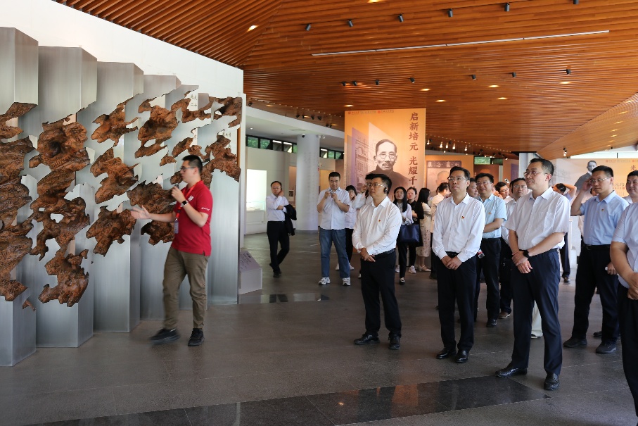 中國(guó)農(nóng)業(yè)發(fā)展銀行駐行紀(jì)檢監(jiān)察組、鄉(xiāng)村振興部黨支部一行首先抵達(dá)北京大學(xué)校史館,北京大學(xué)現(xiàn)代農(nóng)學(xué)院2021級(jí)農(nóng)業(yè)經(jīng)濟(jì)管理專業(yè)博士生程一凡作為志愿者詳細(xì)講解校史館陳列。校史館展示了北大百年發(fā)展的歷史底蘊(yùn)與光輝成就,在場(chǎng)聽眾在講解中深刻領(lǐng)悟了北大“愛國(guó)、進(jìn)步、民主、科學(xué)”的光榮傳統(tǒng),“勤奮、嚴(yán)謹(jǐn)、求實(shí)、創(chuàng)新”的優(yōu)良學(xué)風(fēng)和“思想自由、兼容并包”的學(xué)術(shù)精神。