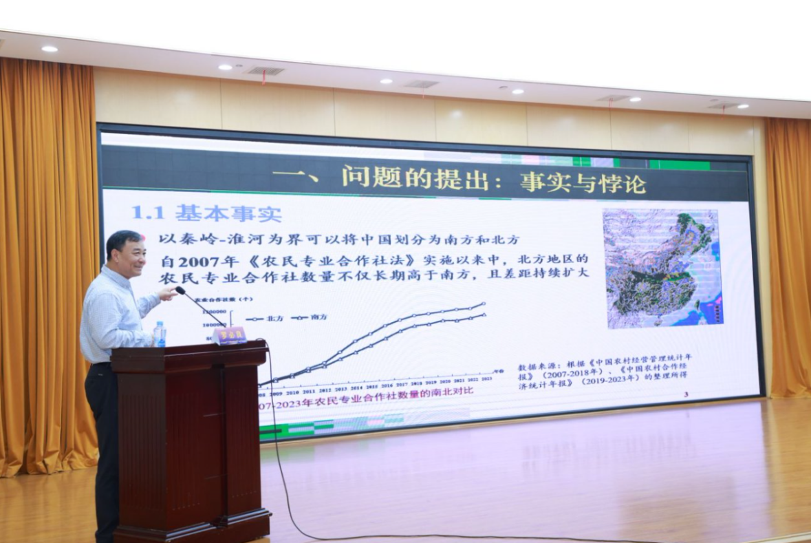 開幕式后,中國社會科學(xué)院學(xué)部委員、中國農(nóng)村發(fā)展學(xué)會會長魏后凱研究員作題為《“十五五”中國農(nóng)村發(fā)展的基本趨勢與關(guān)鍵問題》的主旨報(bào)告;發(fā)展中國家科學(xué)院院士、北京大學(xué)現(xiàn)代農(nóng)學(xué)院院長、江西農(nóng)業(yè)大學(xué)江西省鄉(xiāng)村振興戰(zhàn)略研究院院長黃季焜教授以《數(shù)字技術(shù)提升農(nóng)戶的農(nóng)業(yè)生產(chǎn)力、農(nóng)產(chǎn)品市場價(jià)值和農(nóng)村信貸能力》為題作主旨報(bào)告;長江學(xué)者特聘教授、華南農(nóng)業(yè)大學(xué)文科資深教授羅必良教授以《農(nóng)民合作社發(fā)展:南北差異及其解釋》為題作主旨報(bào)告;中國農(nóng)業(yè)科學(xué)院農(nóng)業(yè)經(jīng)濟(jì)與發(fā)展研究所鐘鈺研究員以《糧食穩(wěn)定安全供給:把握主動權(quán)與走向韌性治理》為題作主旨報(bào)告;江西農(nóng)業(yè)大學(xué)江西省鄉(xiāng)村振興戰(zhàn)略研究院副院長、江西農(nóng)業(yè)大學(xué)經(jīng)濟(jì)管理學(xué)院郭錦墉教授以《農(nóng)業(yè)統(tǒng)一大市場建設(shè):理論框架、現(xiàn)實(shí)挑戰(zhàn)與推進(jìn)策略》為題作主旨報(bào)告。主旨報(bào)告分別由江西農(nóng)業(yè)大學(xué)經(jīng)濟(jì)管理學(xué)院院長李劍富教授、北京大學(xué)現(xiàn)代農(nóng)學(xué)院副院長劉承芳教授主持。