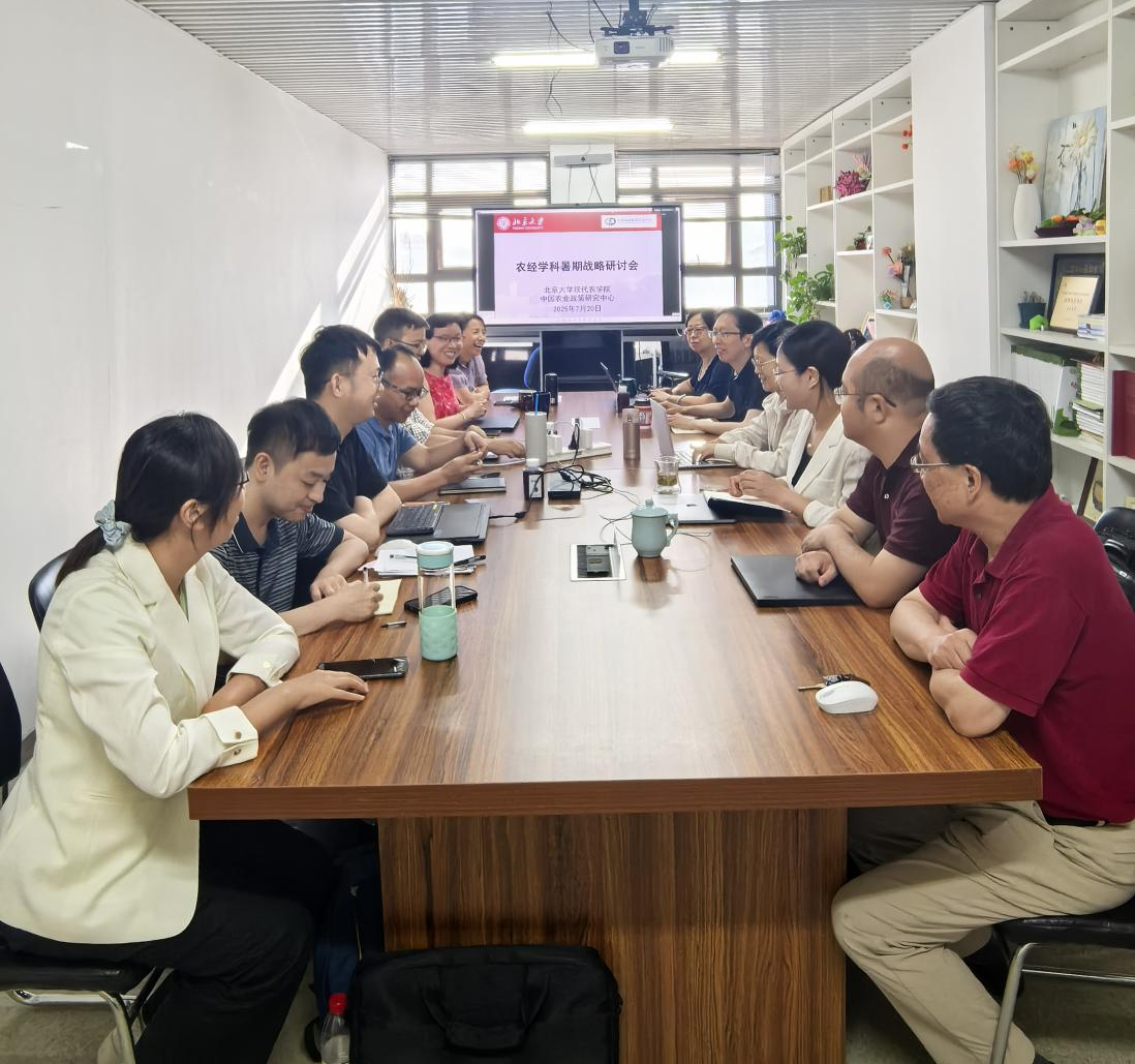 2025年7月20日,北京大學(xué)現(xiàn)代農(nóng)學(xué)院農(nóng)經(jīng)學(xué)科暑期戰(zhàn)略研討會(huì)在北京大學(xué)王克楨樓順利召開,農(nóng)經(jīng)學(xué)科全體13名教師參加了本次戰(zhàn)略研討會(huì)。研討會(huì)由北京大學(xué)現(xiàn)代農(nóng)學(xué)院院長黃季焜教授和北京大學(xué)中國農(nóng)業(yè)政策研究中心(CCAP)主任王金霞教授共同主持。本次戰(zhàn)略研討重點(diǎn)圍繞農(nóng)經(jīng)學(xué)科的發(fā)展規(guī)劃、農(nóng)經(jīng)雙聘候選人及其合作學(xué)科交叉合作研究申請(qǐng)、學(xué)科下階段人才引進(jìn)工作計(jì)劃、CCAP的30周年活動(dòng)相關(guān)事宜安排及北京大學(xué)新農(nóng)村發(fā)展研究院(以下簡(jiǎn)稱“新農(nóng)院”)下半年工作計(jì)劃開展了為期一天的廣泛和深入的討論。