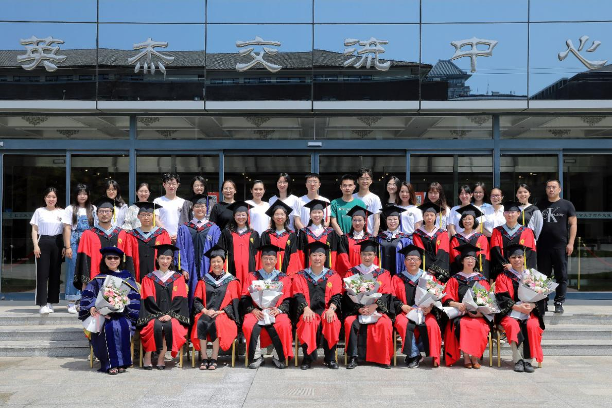 經(jīng)師易遇,人師難得。何其有幸,得遇良師。感言之后,全體畢業(yè)生上臺,為自己的導(dǎo)師獻上盛滿深切情誼的鮮花,并與老師們合影留念,表達他們對恩師的無限感恩之情。