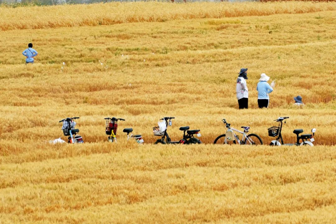 6月7日,位于北京市北三環(huán)聯(lián)想橋畔的中國農(nóng)業(yè)科學(xué)院作物科學(xué)研究所作物科普展示基地,農(nóng)技科研專家對小麥進行田間多點取樣調(diào)查,開展小麥科研工作。圖/中新