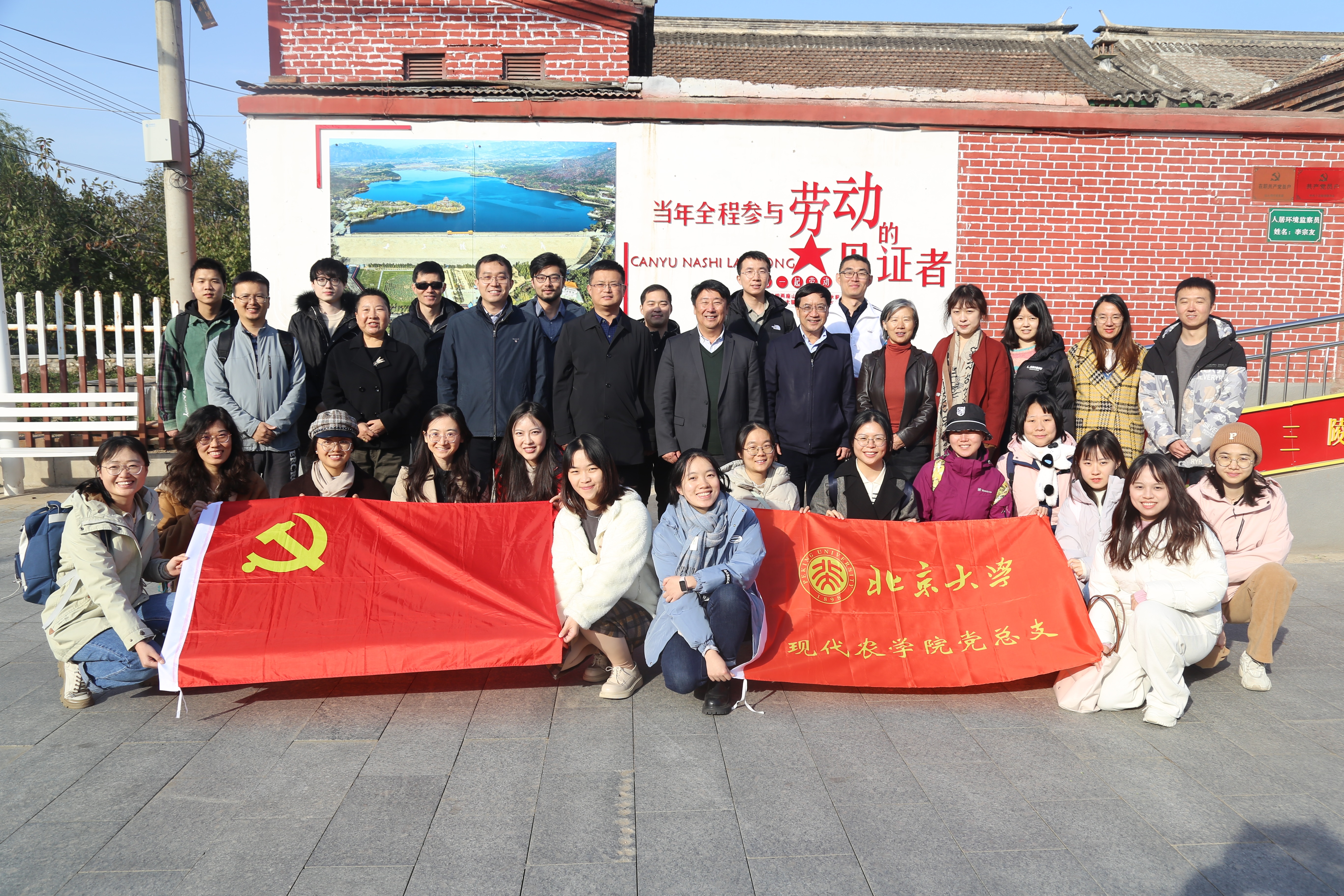 為深入學(xué)習(xí)領(lǐng)悟落實黨的二十大精神,鞏固學(xué)習(xí)貫徹習(xí)近平新時代中國特色社會主義思想主題教育重要成果,引導(dǎo)現(xiàn)代農(nóng)學(xué)院廣大師生深入農(nóng)村鄉(xiāng)野、厚植愛農(nóng)情懷、苦練興農(nóng)本領(lǐng),更好實現(xiàn)學(xué)院以高水平黨建促高質(zhì)量發(fā)展,11月7日下午,北京大學(xué)現(xiàn)代農(nóng)學(xué)院院長劉春明,黨總支書記、副院長西鵬,新農(nóng)村發(fā)展研究院院長、農(nóng)業(yè)與發(fā)展經(jīng)濟系主任黃季焜,以及劉啟昆、田望、黃開興研究員等,攜學(xué)院博士后、博士生黨員一行近30人,赴昌平區(qū)十三陵鎮(zhèn)開展“飲水思源追尋水庫精神 繼往開來服務(wù)鄉(xiāng)村振興”主題黨日活動。十三陵鎮(zhèn)黨委副書記、鎮(zhèn)長王超,常務(wù)副鎮(zhèn)長孟淑芬,副鎮(zhèn)長段海仁,鎮(zhèn)農(nóng)服中心主任闕純利,鎮(zhèn)市民活動中心主任沈濤等領(lǐng)導(dǎo)陪同參觀并座談。