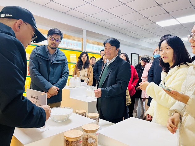 接著,學(xué)院黨員師生一行又來到了位于十三陵鎮(zhèn)的兆豐農(nóng)創(chuàng)園和科技小院,深入了解了企業(yè)在小麥育種、種植、加工等領(lǐng)域的成功經(jīng)驗,以及在推廣中國傳統(tǒng)農(nóng)耕文化方面的有效做法。兆豐河套面業(yè)有限公司專注于石碾制粉,形成了河套小麥全產(chǎn)業(yè)鏈發(fā)展模式,實現(xiàn)了從麥田到餐桌的品質(zhì)保證。今年6月5日,習(xí)近平總書記視察了巴彥淖爾現(xiàn)代農(nóng)業(yè)示范園區(qū),高度評價了該公司選育的優(yōu)質(zhì)蒸煮類專用小麥品種巴麥13號。兆豐農(nóng)創(chuàng)園是內(nèi)蒙古兆豐河套面業(yè)有限公司依托在農(nóng)業(yè)領(lǐng)域的行業(yè)積累和資源優(yōu)勢,以“融合城鄉(xiāng)資源,助力鄉(xiāng)村振興”為目標(biāo),在北京推出的第一個農(nóng)業(yè)科創(chuàng)項目。園區(qū)內(nèi)提供“科創(chuàng)農(nóng)業(yè)”“景觀田園”“林下營地”“農(nóng)事課堂”“勞動體驗”“微耕農(nóng)藝”六大場景服務(wù)。通過學(xué)習(xí)交流,學(xué)院師生體驗和學(xué)習(xí)了農(nóng)業(yè)領(lǐng)域的知識和實踐,同時也了解了鄉(xiāng)村發(fā)展、農(nóng)村生活和農(nóng)業(yè)科創(chuàng)項目的重要性。