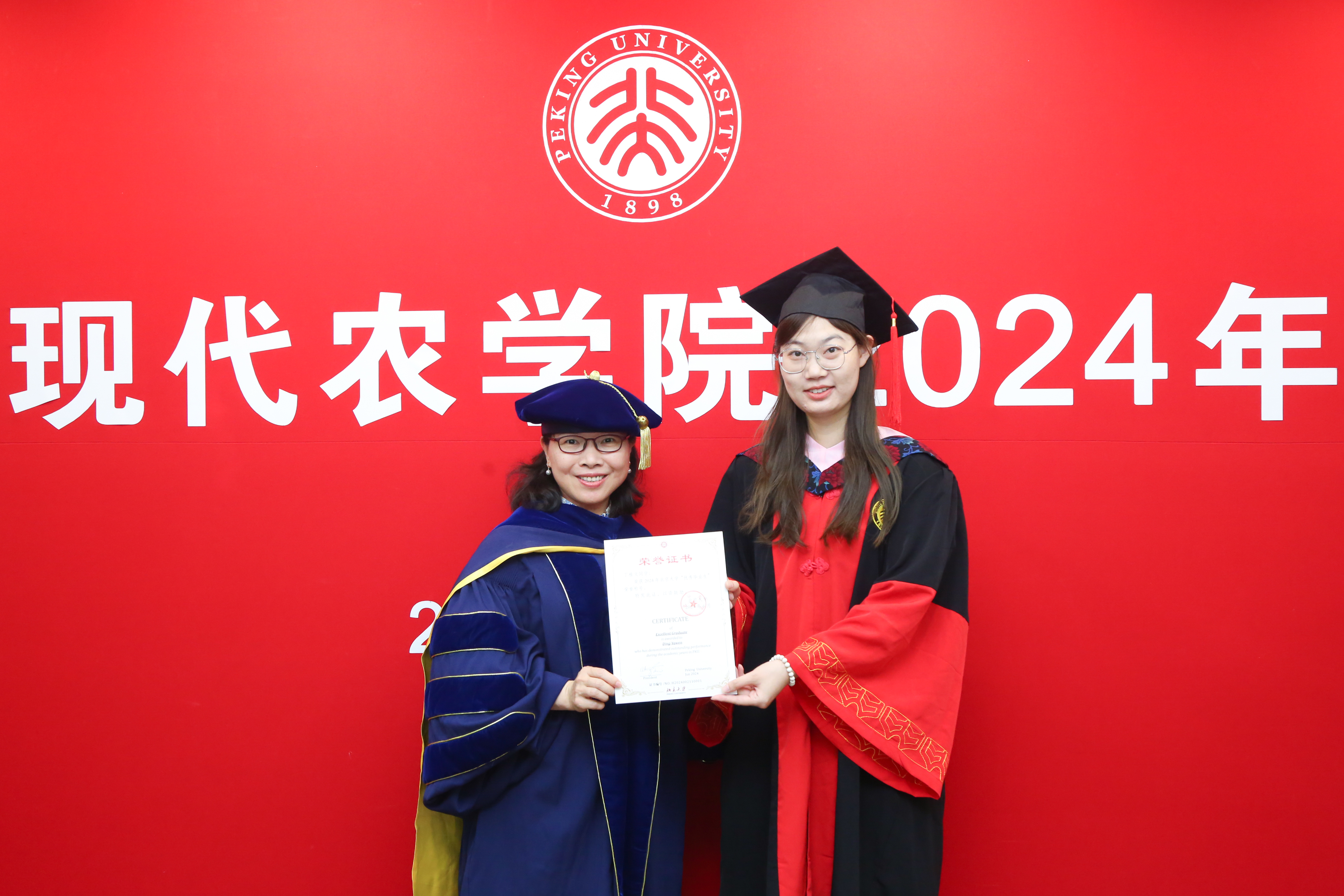 畢業(yè)生王雪融和丁雅文獲評2023-2024年度北京大學(xué)優(yōu)秀畢業(yè)生,王雪融同時獲評北京市優(yōu)秀畢業(yè)生。現(xiàn)代農(nóng)學(xué)院副院長、黨總支副書記劉承芳教授為她們頒發(fā)獲獎證書,祝賀她們?nèi)〉脙?yōu)異成績。