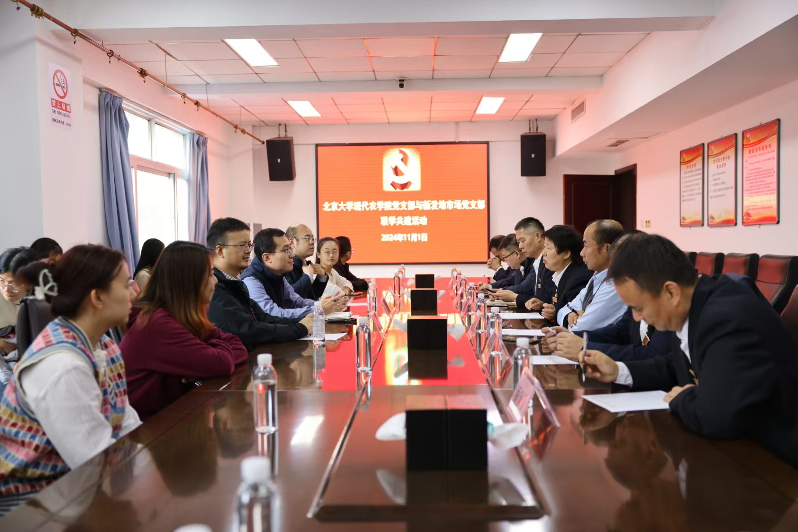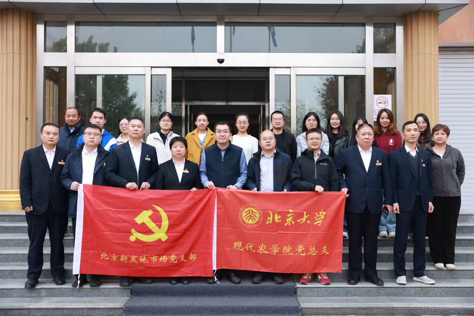 為深入學(xué)習(xí)貫徹黨的二十屆三中全會(huì)精神,進(jìn)一步鞏固學(xué)習(xí)貫徹習(xí)近平新時(shí)代中國特色社會(huì)主義思想主題教育成果,加強(qiáng)校地合作與交流,推動(dòng)黨建與業(yè)務(wù)工作的深度融合,2024年11月1日下午,北京大學(xué)現(xiàn)代農(nóng)學(xué)院黨總支書記、副院長(zhǎng)西鵬,現(xiàn)代農(nóng)學(xué)院長(zhǎng)聘副教授、現(xiàn)代農(nóng)學(xué)院農(nóng)經(jīng)與行政聯(lián)合黨支部書記解偉,黃開興研究員,以及學(xué)院博士后、博士生黨員、院務(wù)辦公室職員一行15人,赴北京新發(fā)地農(nóng)產(chǎn)品批發(fā)市場(chǎng)開展北京大學(xué)現(xiàn)代農(nóng)學(xué)院黨總支與新發(fā)地農(nóng)產(chǎn)品批發(fā)市場(chǎng)黨支部聯(lián)學(xué)共建活動(dòng)。新發(fā)地市場(chǎng)黨支部書記、工會(huì)主席董洪波,黨支部委員趙志剛,流動(dòng)黨支部書記邢孟玉、副書記吳松旭等領(lǐng)導(dǎo)陪同參觀并座談。
