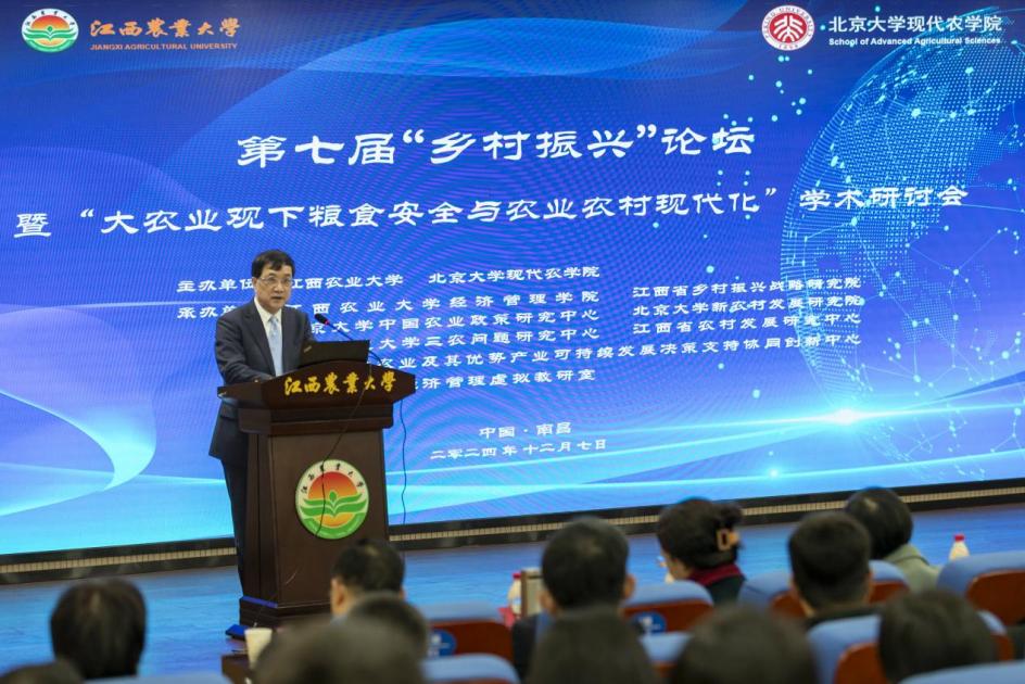 12月6日至8日,第七屆“鄉(xiāng)村振興”論壇暨“大農(nóng)業(yè)觀下糧食安全與農(nóng)業(yè)農(nóng)村現(xiàn)代化”學(xué)術(shù)研討會(huì)在江西農(nóng)業(yè)大學(xué)成功舉辦。本次論壇以“大農(nóng)業(yè)觀下糧食安全與農(nóng)業(yè)農(nóng)村現(xiàn)代化”為主題,由北京大學(xué)現(xiàn)代農(nóng)學(xué)院與江西農(nóng)業(yè)大學(xué)聯(lián)合主辦,北京大學(xué)中國(guó)農(nóng)業(yè)政策研究中心、北京大學(xué)新農(nóng)村發(fā)展研究院、江西農(nóng)業(yè)大學(xué)經(jīng)濟(jì)管理學(xué)院、江西省鄉(xiāng)村振興戰(zhàn)略研究院、江西農(nóng)業(yè)大學(xué)“三農(nóng)”問(wèn)題研究中心、江西省農(nóng)村發(fā)展研究中心、江西現(xiàn)代農(nóng)業(yè)及其優(yōu)勢(shì)產(chǎn)業(yè)可持續(xù)發(fā)展的決策支持協(xié)同創(chuàng)新中心、江西省農(nóng)林經(jīng)濟(jì)管理專業(yè)虛擬教研室共同協(xié)辦。來(lái)自北京大學(xué)、中國(guó)人民大學(xué)、吉林大學(xué)、中國(guó)農(nóng)業(yè)大學(xué)、華中農(nóng)業(yè)大學(xué)等高等院校和科研院所的特邀專家、知名期刊主編代表以及征文作者代表共計(jì)200余人參加了會(huì)議。論壇開(kāi)幕式由北京大學(xué)現(xiàn)代農(nóng)學(xué)院院長(zhǎng)黃季焜教授主持。
