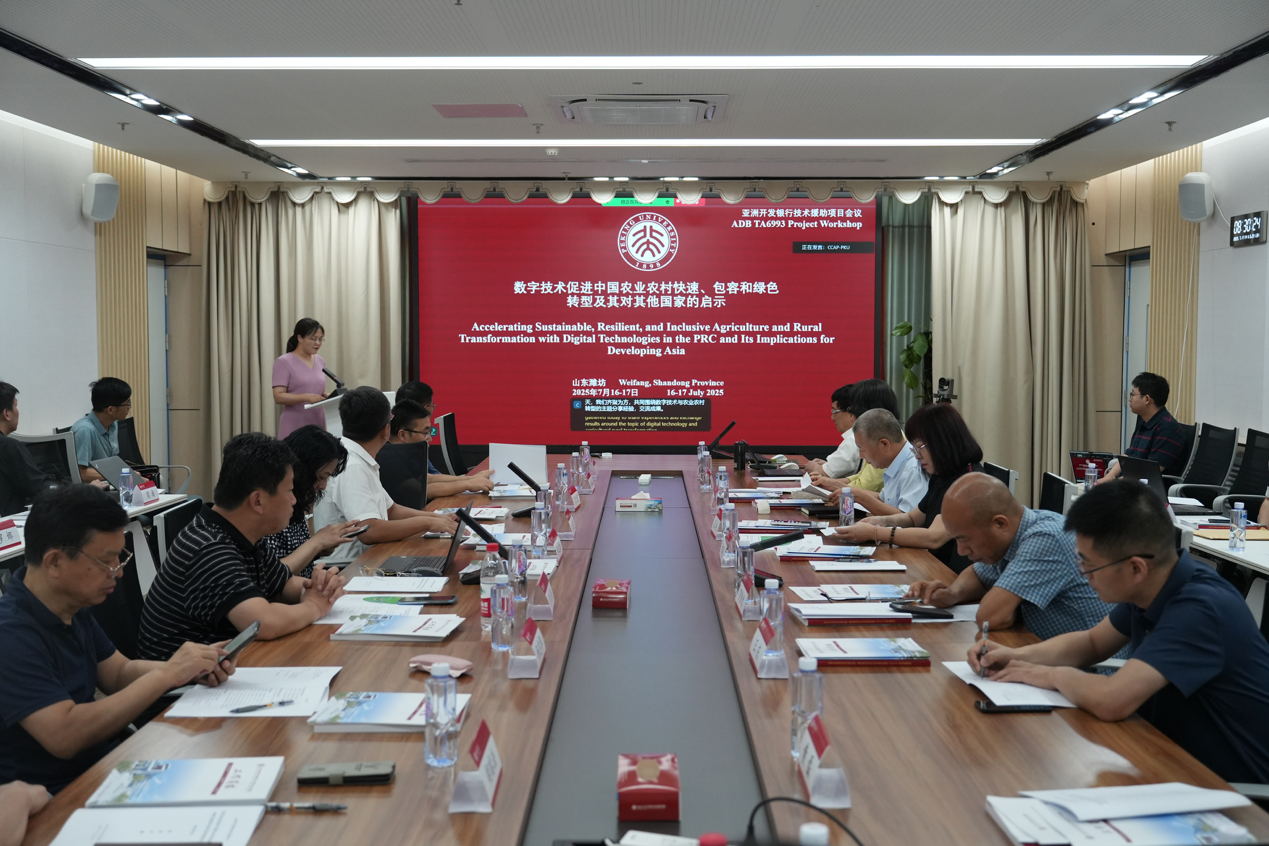 2025年7月17日,北京大學(xué)現(xiàn)代農(nóng)學(xué)院在山東濰坊北京大學(xué)現(xiàn)代農(nóng)業(yè)研究院順利舉辦了“數(shù)字技術(shù)促進(jìn)可持續(xù)、韌性和包容的中國(guó)農(nóng)業(yè)農(nóng)村轉(zhuǎn)型及對(duì)亞洲其他發(fā)展中國(guó)家的借鑒”學(xué)術(shù)研討會(huì)。該研討會(huì)的主要目標(biāo)是分享亞洲開(kāi)發(fā)銀行技術(shù)援助項(xiàng)目的成果與經(jīng)驗(yàn)。該項(xiàng)目在農(nóng)業(yè)農(nóng)村部對(duì)外經(jīng)濟(jì)合作中心、政策與改革司的指導(dǎo)和亞洲開(kāi)發(fā)銀行的資助下,由北京大學(xué)現(xiàn)代農(nóng)學(xué)院院長(zhǎng)黃季焜教授領(lǐng)銜的專家團(tuán)隊(duì)歷時(shí)兩年對(duì)我國(guó)數(shù)字技術(shù)在農(nóng)業(yè)農(nóng)村中的應(yīng)用案例進(jìn)行了系統(tǒng)總結(jié)。會(huì)議由亞行技術(shù)援助項(xiàng)目農(nóng)業(yè)專家、北京大學(xué)現(xiàn)代農(nóng)學(xué)院易紅梅教授主持,來(lái)自農(nóng)業(yè)農(nóng)村部、亞洲開(kāi)發(fā)銀行、地方政府、農(nóng)業(yè)數(shù)字服務(wù)企業(yè)、以及深耕數(shù)字農(nóng)業(yè)各領(lǐng)域的專家一共30余位代表參加了此次會(huì)議。