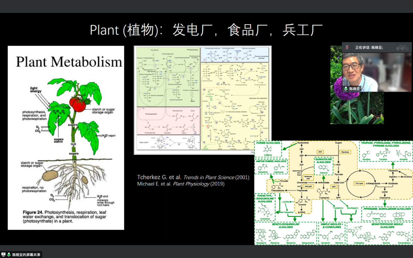 晚間研討會(huì)由鄧興旺老師主持。首先由陳曉亞老師介紹植物次生代謝,尤其是萜類(lèi)的合成調(diào)控。陳老師主要介紹了其課題組在棉酚合成、丹參酮合成以及輔酶Q合成中的工作,鑒定到了多個(gè)合成相關(guān)的酶,為天然產(chǎn)物的研發(fā)奠定了重要基礎(chǔ)。此外陳老師也介紹了一些延伸性的非常有趣的工作,如利用棉花表達(dá)抑制害蟲(chóng)的RNA,為抗蟲(chóng)棉的培育提供了新思路。之后劉耀光老師向大家介紹了水稻雜種不育的分子遺傳機(jī)制,主要講述了水稻秈粳亞種間雜種不育基因Sa和Sc的作用機(jī)理以及克服水稻雜種不育的方法。接下來(lái)趙云德老師介紹了生長(zhǎng)素代謝的調(diào)控,講述了GH3、DAO和ILR1在生長(zhǎng)素儲(chǔ)存、激活和失活中的作用。最后鄧興旺老師介紹了其團(tuán)隊(duì)自主創(chuàng)新的前沿性生物農(nóng)業(yè)的核心技術(shù),包括水稻/小麥/玉米第三代雜交育種技術(shù)的研發(fā)與應(yīng)用以及潔田技術(shù)和潔田模式在大豆玉米間作的應(yīng)用等。