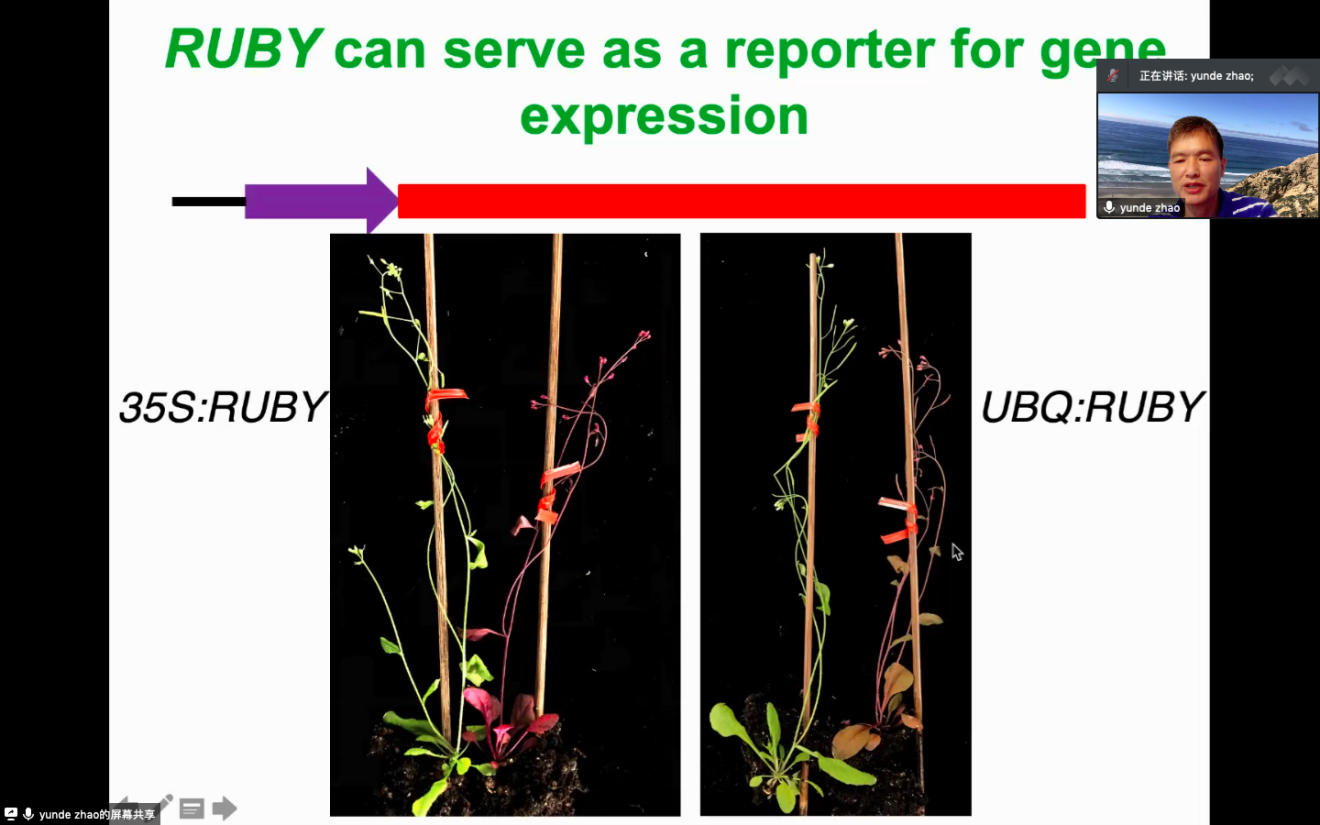 趙云德老師以基因編輯和生長(zhǎng)素相關(guān)研究為例,帶領(lǐng)大家深入思考科研中的重要問(wèn)題、實(shí)踐挑戰(zhàn)以及解決方法,引導(dǎo)大家發(fā)現(xiàn)和發(fā)展有趣的創(chuàng)新性工作。在上午的課程中,趙老師首先向大家介紹了基因編輯的發(fā)現(xiàn)、發(fā)展、原理等相關(guān)內(nèi)容,在基因編輯過(guò)程中以解決問(wèn)題為導(dǎo)向,提出合適的科學(xué)問(wèn)題,優(yōu)化基因編輯在植物中的應(yīng)用。RUBY報(bào)告系統(tǒng)的開(kāi)發(fā)及應(yīng)用,簡(jiǎn)化了在轉(zhuǎn)基因篩選過(guò)程中的工作步驟,使得轉(zhuǎn)基因材料獲得過(guò)程變得簡(jiǎn)單,化繁為簡(jiǎn),輕松愉快地獲得轉(zhuǎn)基因材料。趙老師無(wú)私地與感興趣的學(xué)員們分享RUBY相關(guān)的材料。