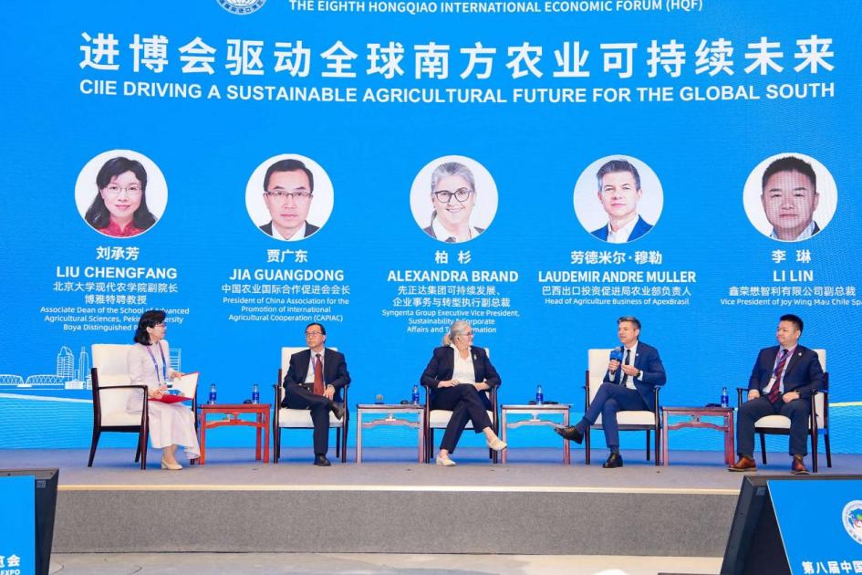 論壇的圓桌對話環(huán)節(jié)由北京大學(xué)現(xiàn)代農(nóng)學(xué)院副院長、博雅特聘教授劉承芳主持,中國農(nóng)業(yè)國際合作促進會會長賈廣東、鑫榮懋智利有限公司副總裁李琳、先正達集團可持續(xù)發(fā)展、企業(yè)事務(wù)與轉(zhuǎn)型執(zhí)行副總裁柏杉(Alexandra Brand)與巴西出口投資促進局農(nóng)業(yè)處負責(zé)人勞德米爾·穆勒等中外嘉賓圍繞“如何破解全球南方農(nóng)業(yè)的可持續(xù)性難題”與“進博會平臺如何催化全球南方農(nóng)業(yè)貿(mào)易的高質(zhì)量發(fā)展”兩大議題展開討論。嘉賓們結(jié)合自身的專業(yè)領(lǐng)域和實踐經(jīng)驗,從科技、政策、市場、國際合作等多個維度,分析了挑戰(zhàn)背后的機遇,并分享了富有建設(shè)性的思路。