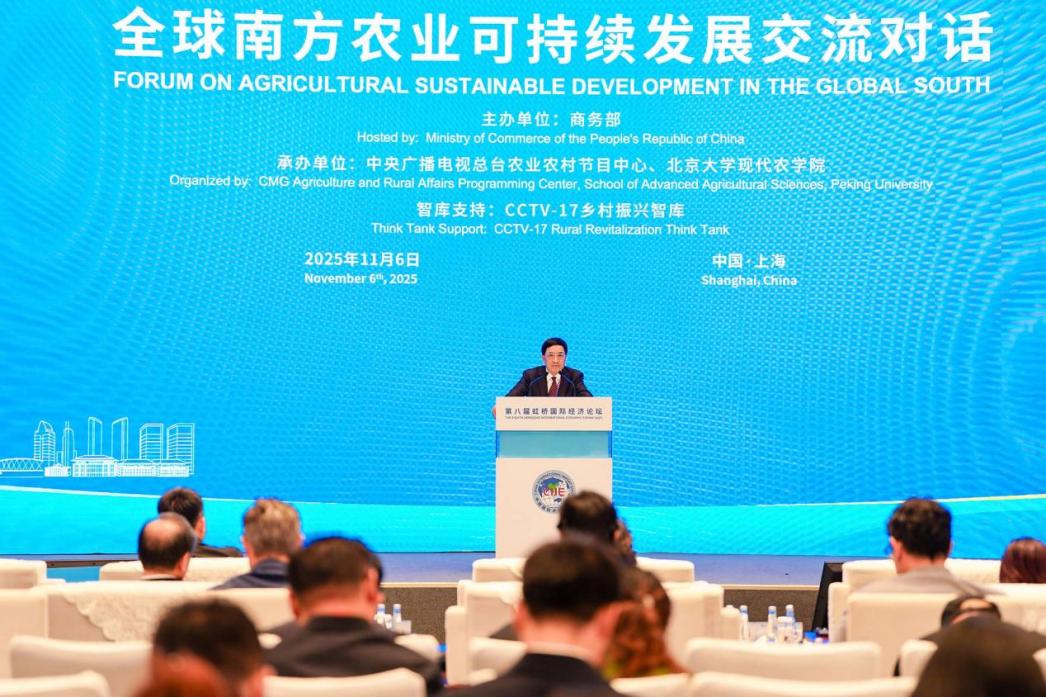 2025年11月6日,在第八屆中國國際進口博覽會隆重召開之際,由商務(wù)部主辦,中央廣播電視總臺農(nóng)業(yè)農(nóng)村節(jié)目中心與北京大學(xué)現(xiàn)代農(nóng)學(xué)院承辦的第八屆虹橋國際經(jīng)濟論壇“全球南方農(nóng)業(yè)可持續(xù)發(fā)展交流對話”分論壇在上海國家會展中心成功舉辦。論壇匯聚了來自全球的20余位高級別嘉賓以及300多位國內(nèi)涉農(nóng)機構(gòu)和企業(yè)代表,共同圍繞全球南方農(nóng)業(yè)可持續(xù)發(fā)展面臨的挑戰(zhàn)與合作路徑開展深入交流。北京大學(xué)副校長、中國科學(xué)院院士樸世龍出席論壇并致辭。