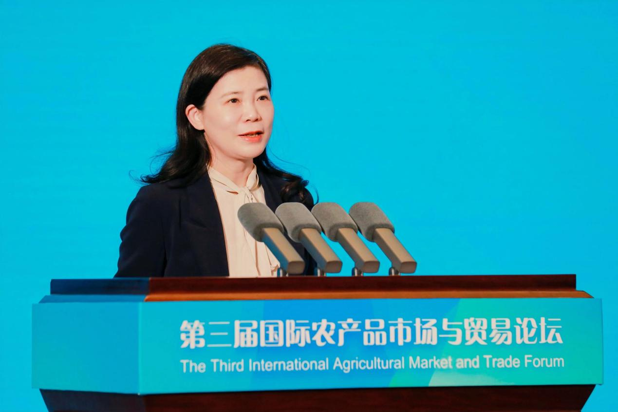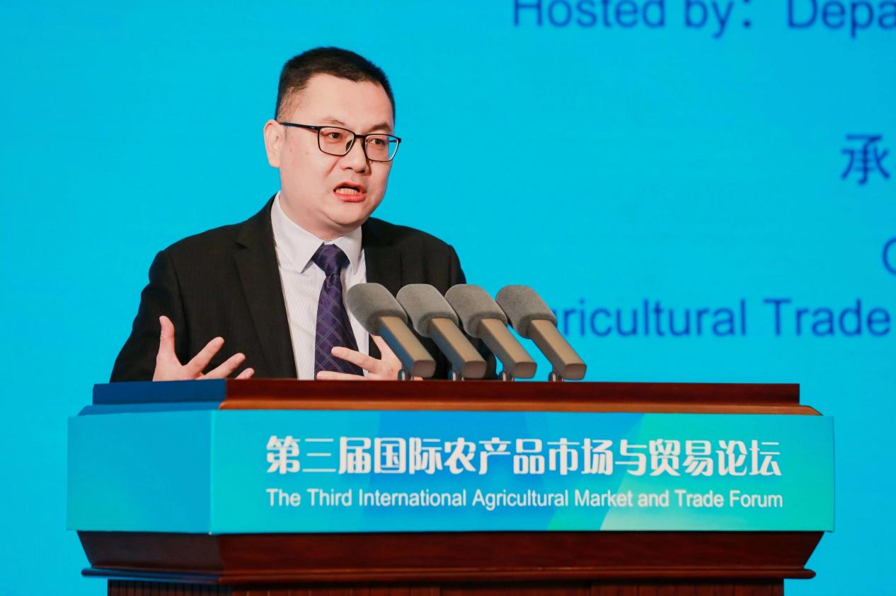 隋鵬飛司長在致辭中用“Market—Marketing”(市場-市場活動(dòng))“Trade—Trading”(貿(mào)易-貿(mào)易活動(dòng))“Service—Servicing”(服務(wù)-服務(wù)活動(dòng))三組關(guān)鍵詞分享了其對國際農(nóng)產(chǎn)品市場與貿(mào)易的看法,并表示中國將積極推進(jìn)全球化、推動(dòng)跨境農(nóng)業(yè)服務(wù)貿(mào)易發(fā)展,為農(nóng)業(yè)高水平發(fā)展提供解決方案。