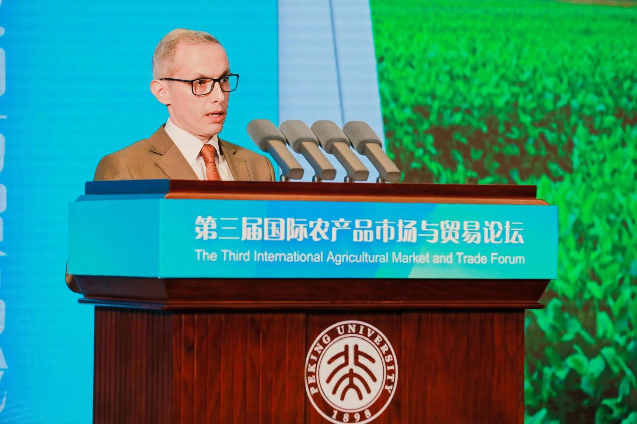 董志勇副校長致辭表示,論壇聚焦研判全球農(nóng)產(chǎn)品市場與貿(mào)易的發(fā)展趨勢,為科學(xué)引導(dǎo)農(nóng)產(chǎn)品國際市場預(yù)期提供了重要平臺。今年正值北京大學(xué)學(xué)科質(zhì)量提升的關(guān)鍵之年,北大將以本次論壇為契機(jī),深化對國際農(nóng)產(chǎn)品市場與貿(mào)易發(fā)展規(guī)律的研究和認(rèn)識,為促進(jìn)世界糧食產(chǎn)業(yè)健康發(fā)展、維護(hù)世界糧食安全貢獻(xiàn)北大智慧和力量。
