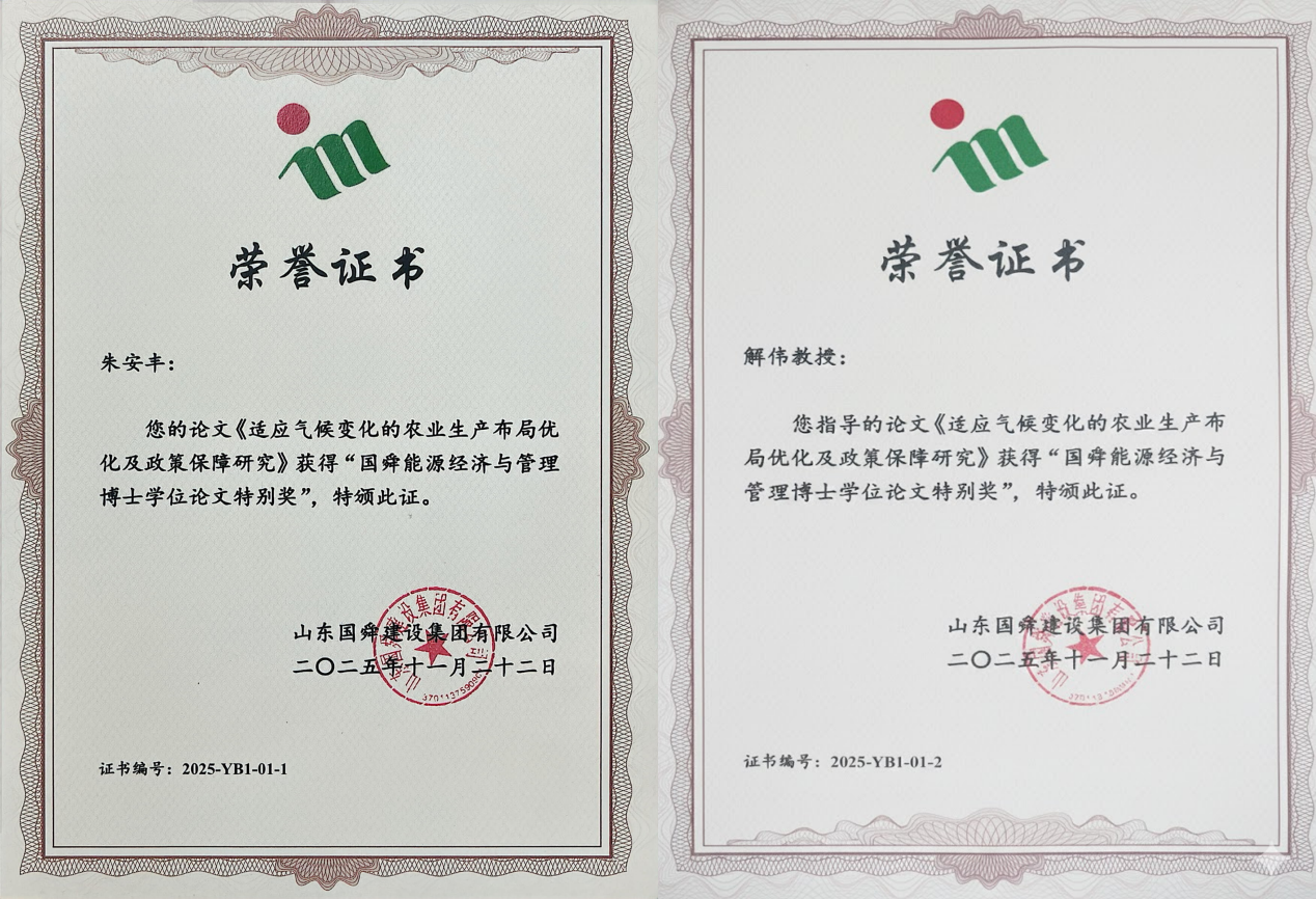 現(xiàn)代農學院博士畢業(yè)生獲得“國舜博士學位論文”特別獎