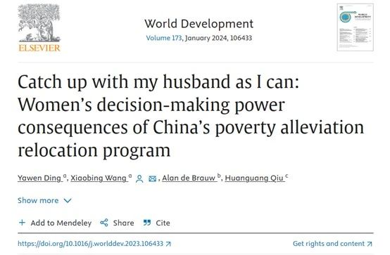 研究成果 | 王曉兵研究員團隊在World Development上發(fā)文2023-10-25 -