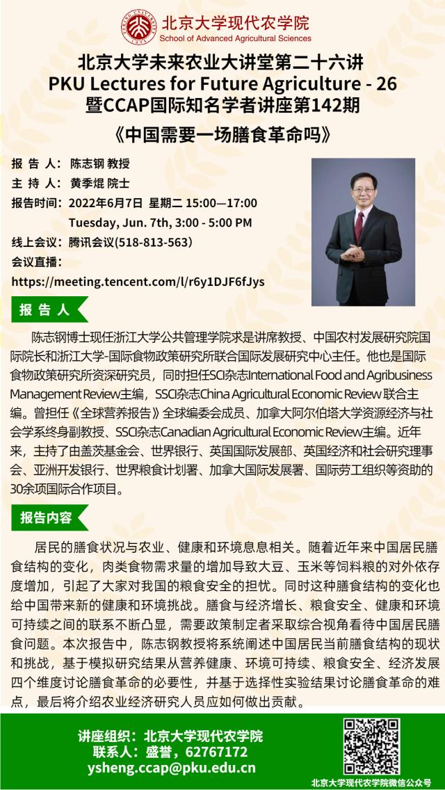 講座通知:北京大學(xué)未來(lái)農(nóng)業(yè)大講堂第二十六講——中國(guó)需要一場(chǎng)膳食革命嗎