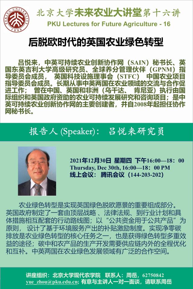 講座通知:北京大學(xué)未來農(nóng)業(yè)大講堂第十六講——后脫歐時代的英國農(nóng)業(yè)綠色轉(zhuǎn)型