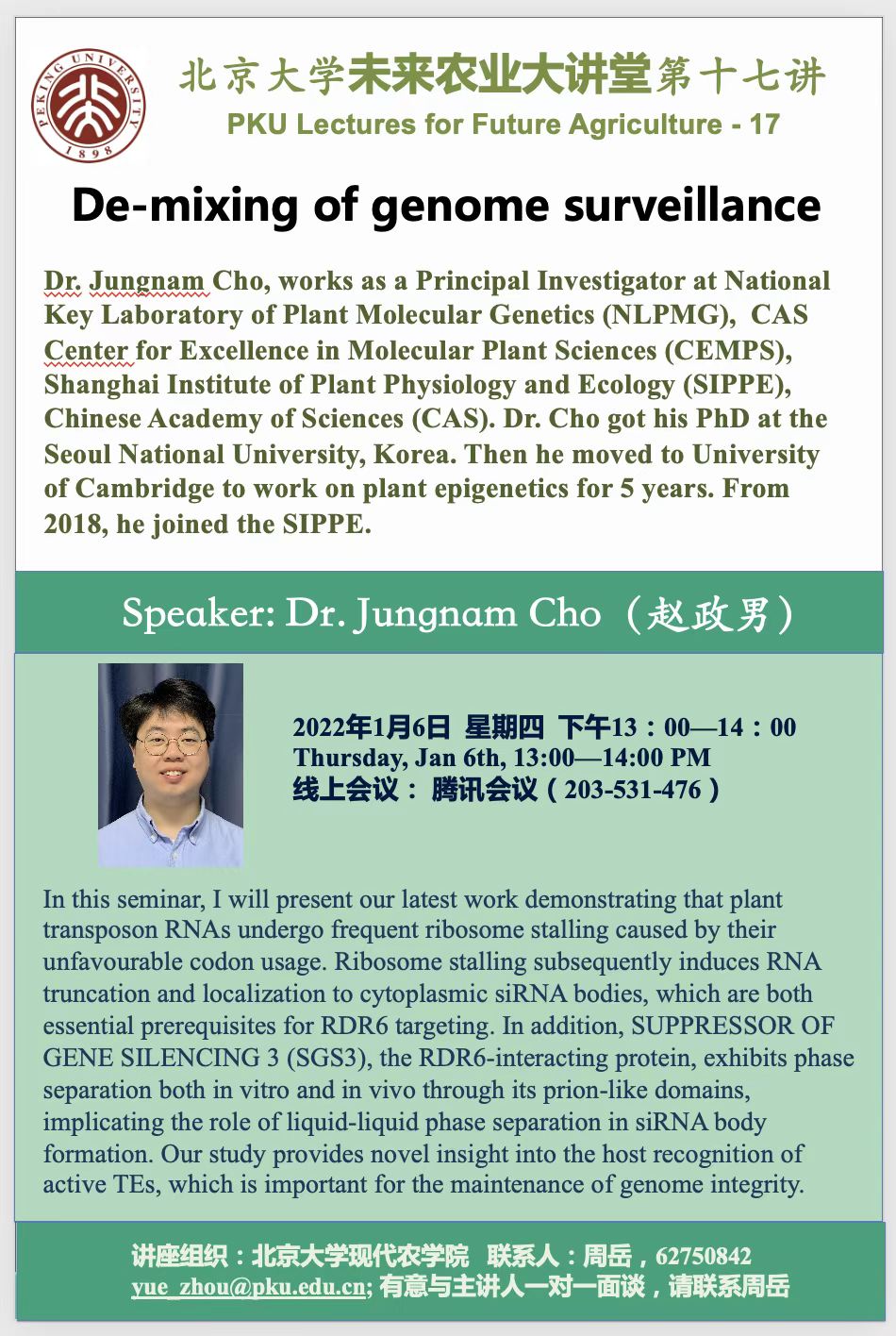講座通知:北京大學(xué)未來農(nóng)業(yè)大講堂第十七講——De-mixing of genome surveillance